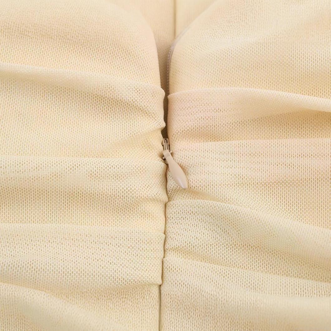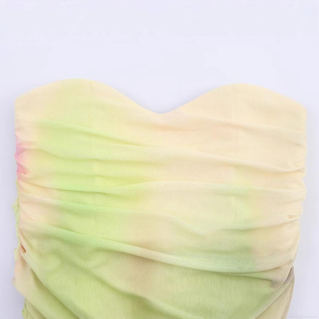 • Elegant Gradient Print Mesh Tube Midi Dress Sexy Pleated Ruched Strapless Party Evening Cocktail Dresses For Women Polyester Bodycon Dress