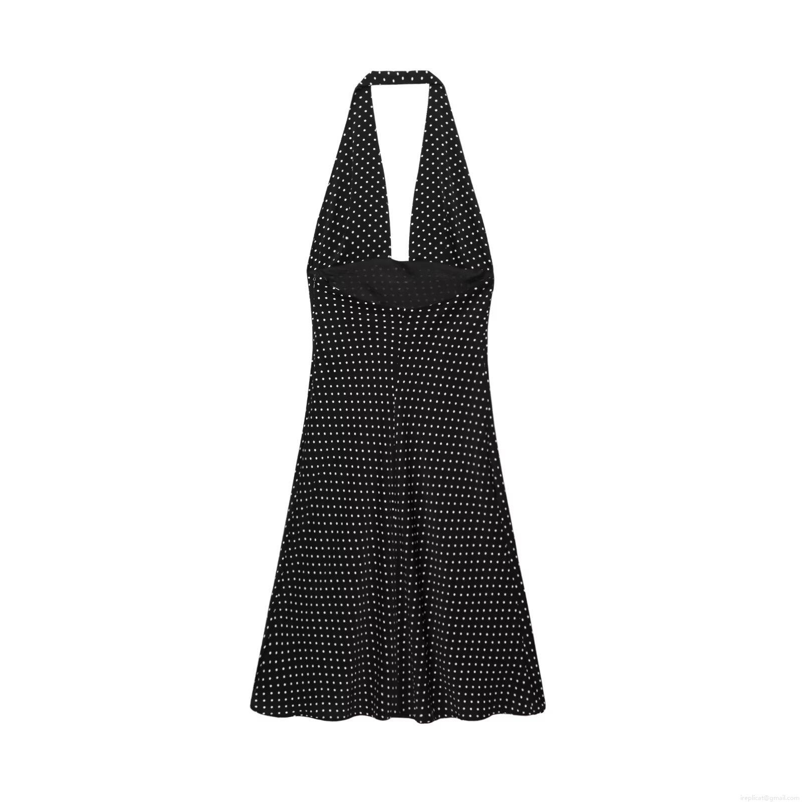 Polka Dots, Backless, Neckband Design, A-line Skirt