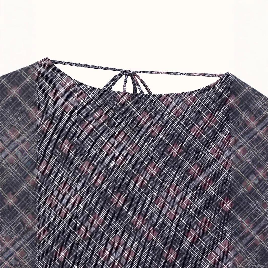 Bow, Gingham, Pleats, Mesh, Irregular Hem, V-neck, Back Strap