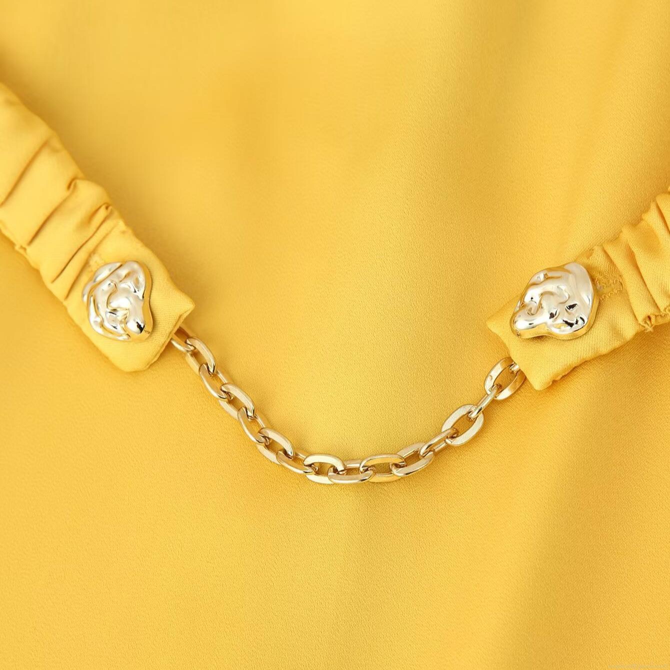 Solid Color, Retro, Belt Decoration, Satin Texture