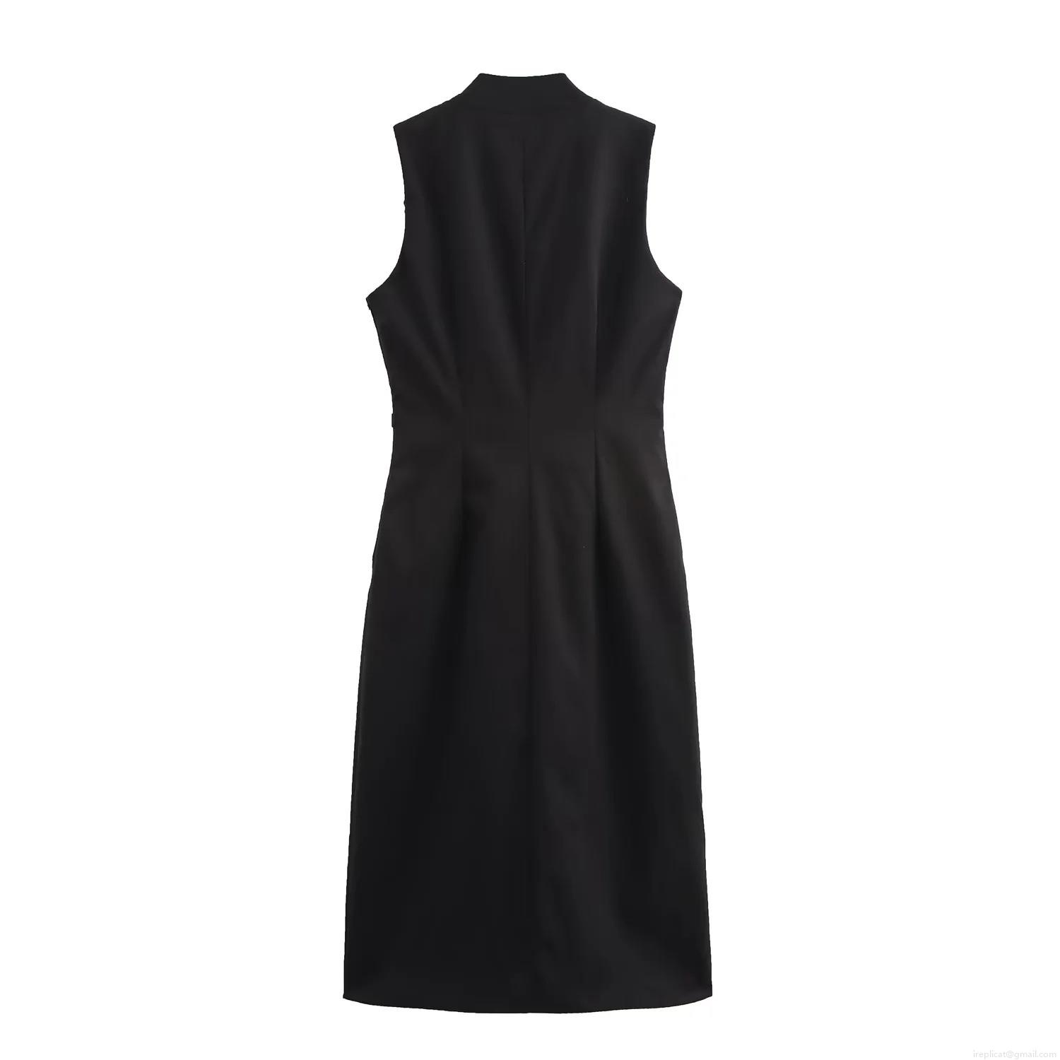 • Elegant Sleeveless V-Neck Midi Dress Polyester Blend Metal Horsebit Buckle Waist Decoration Slim Fit For Party Evening Banquet Date Commute Fashionable Lady Style Women's Clothing