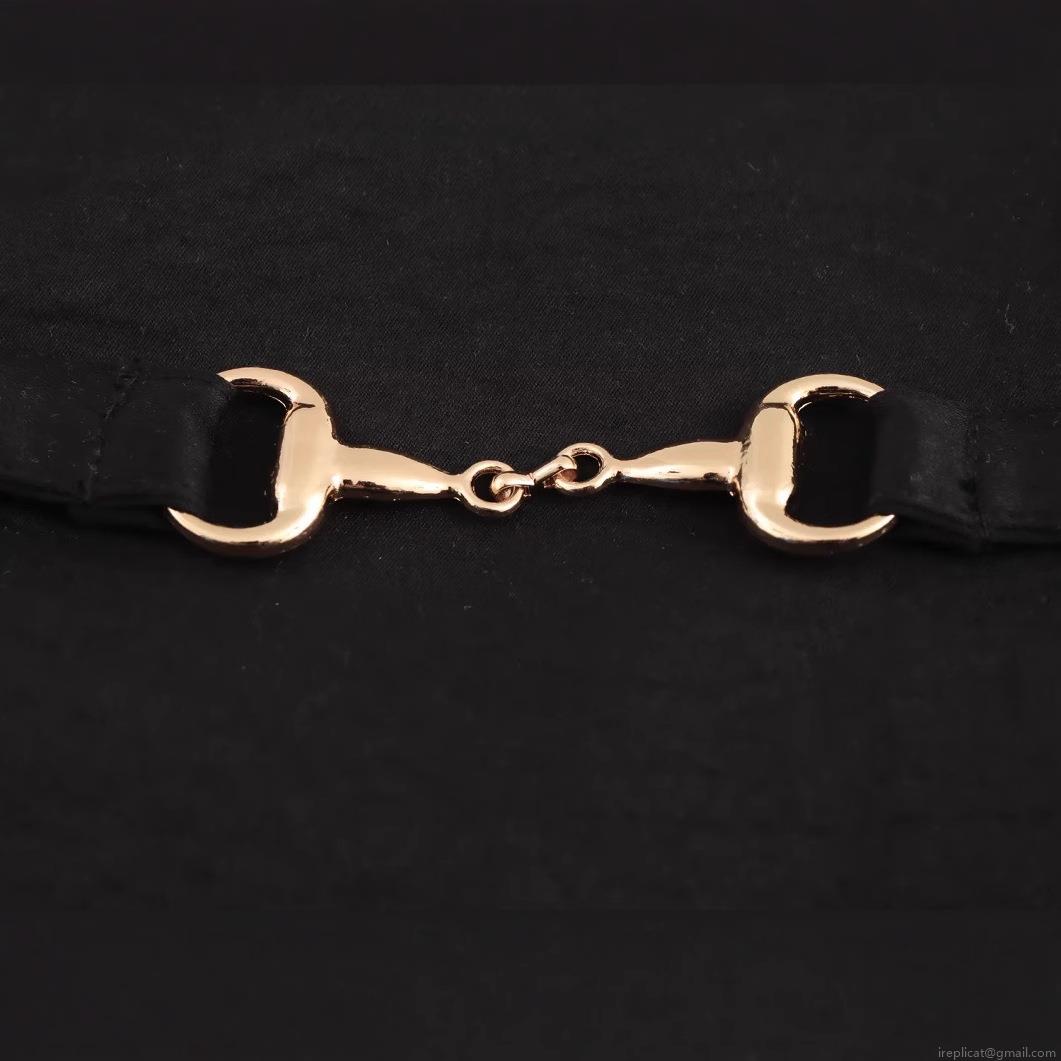 Solid Color, Horsebit, Waist shaping, V-neck, Metal Decoration