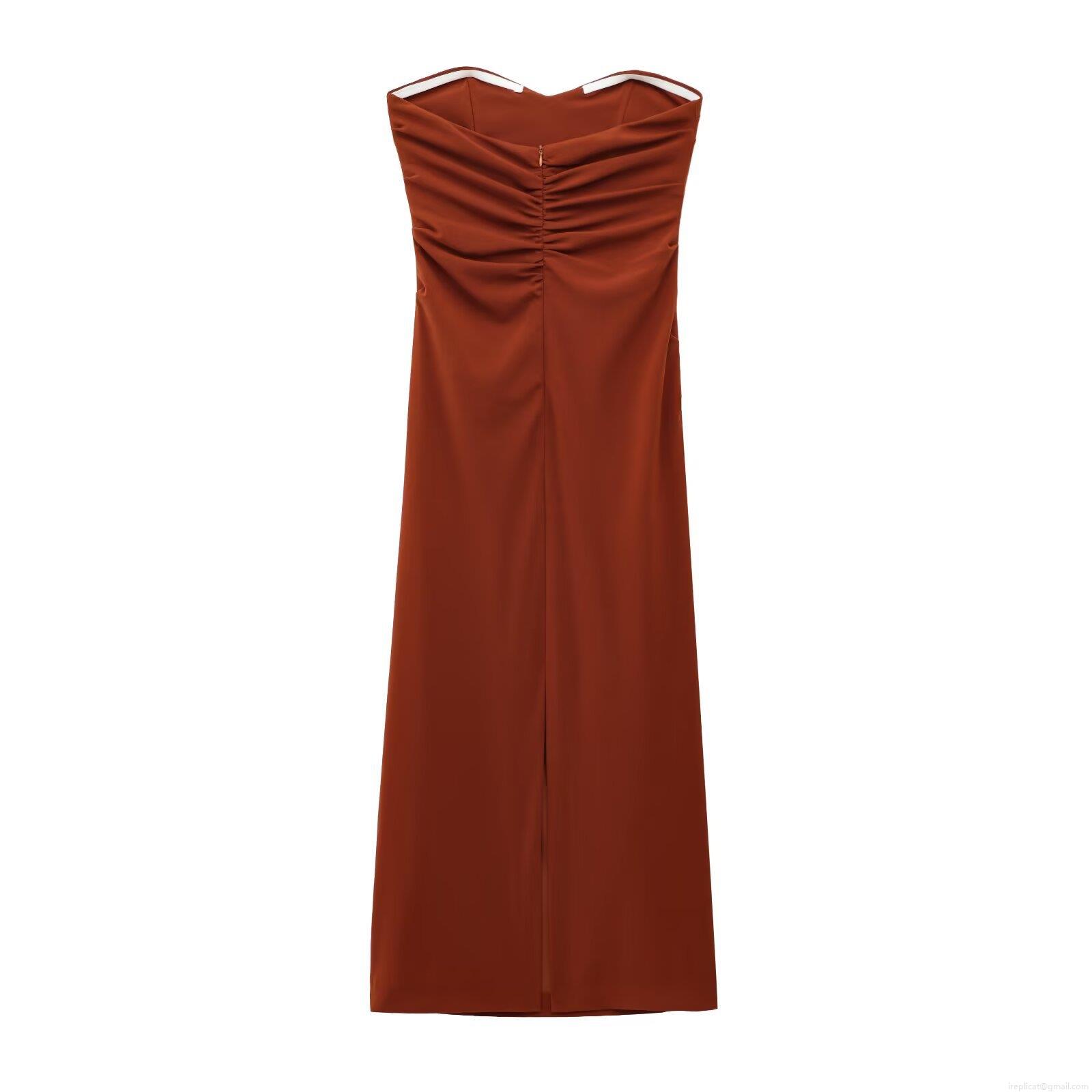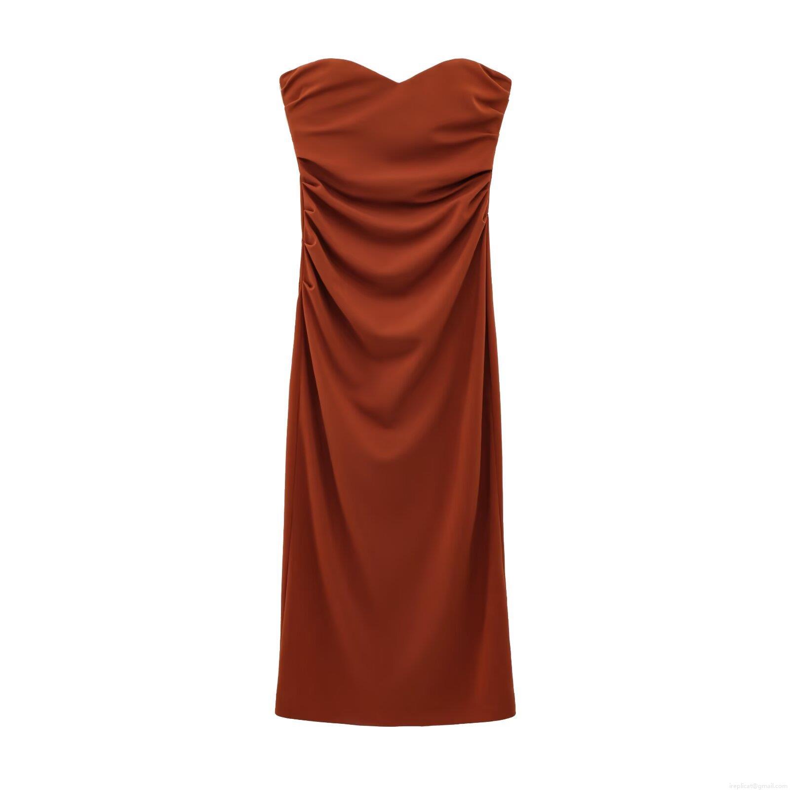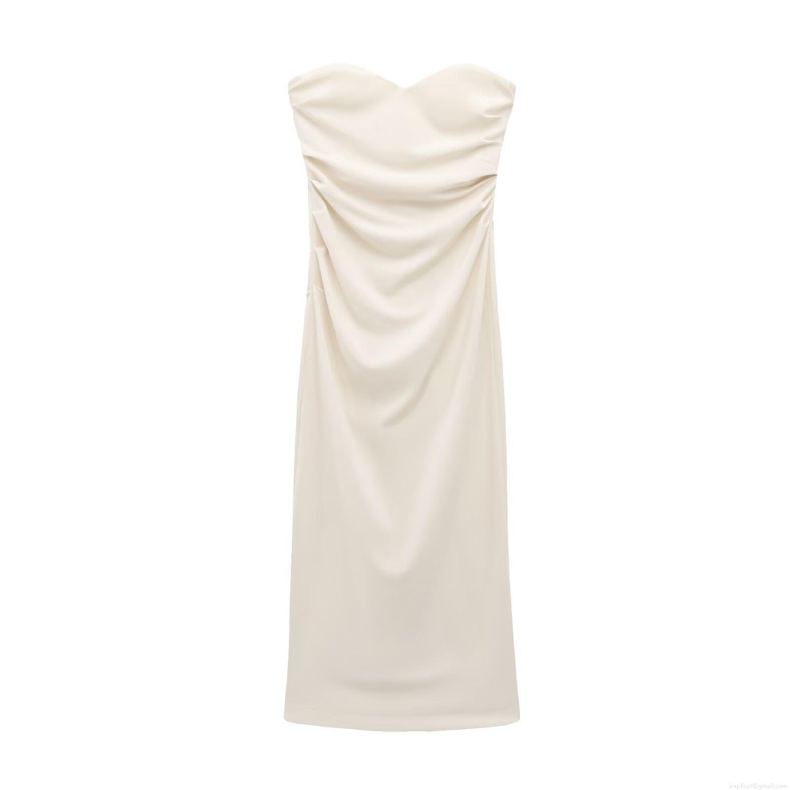 • Elegant Strapless Sweetheart Neckline Ruched Bodycon Midi Dress Sexy Split Hem Knitted Polyester Evening Party Socialite Style Dress for Women
