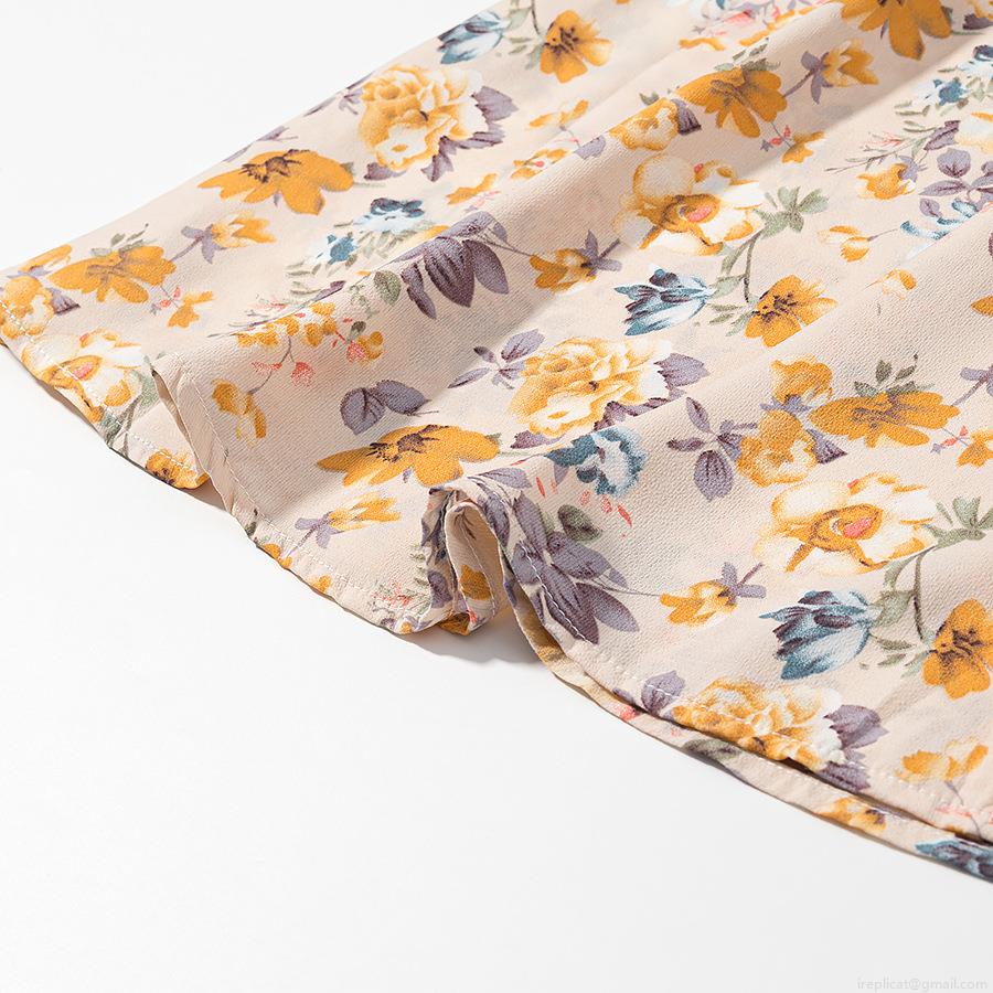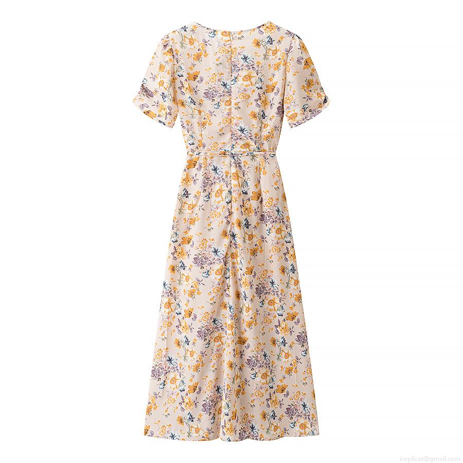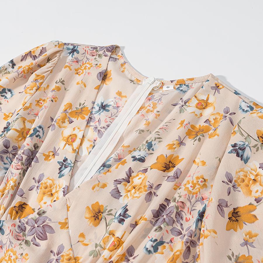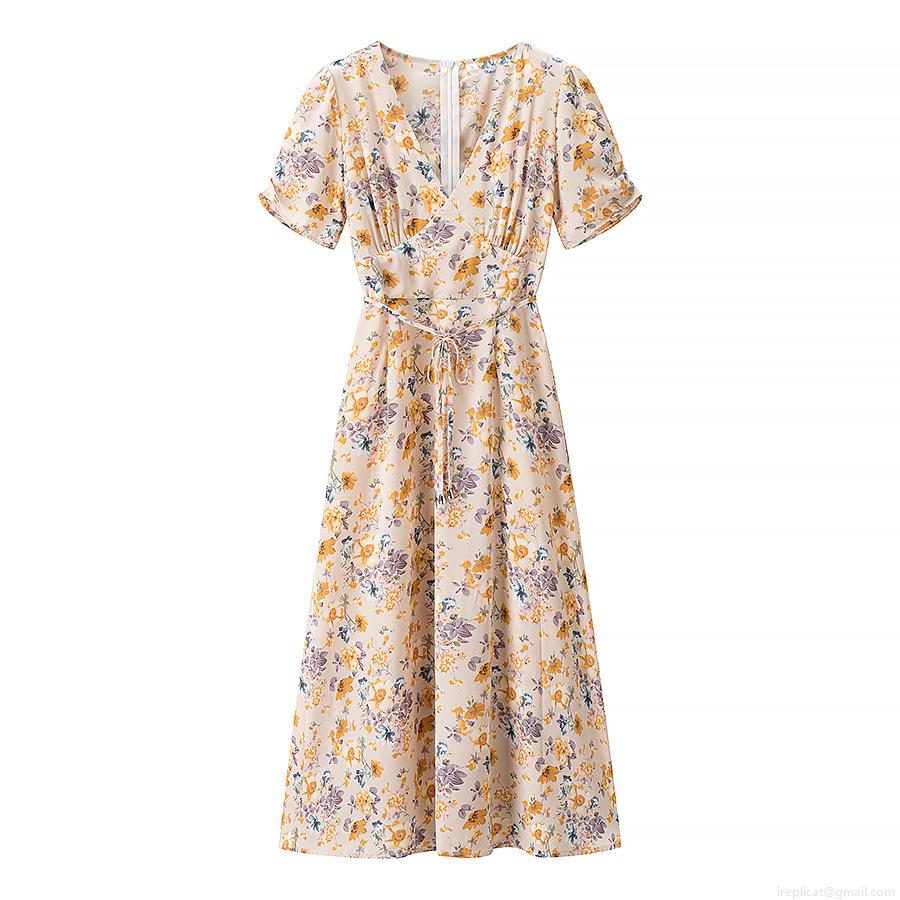 Floral Pattern, Waist shaping, Printing, V-neck, Lace, A-shaped Arrangement