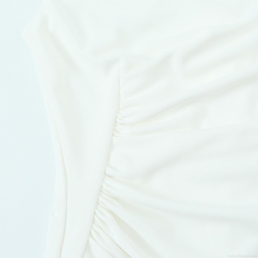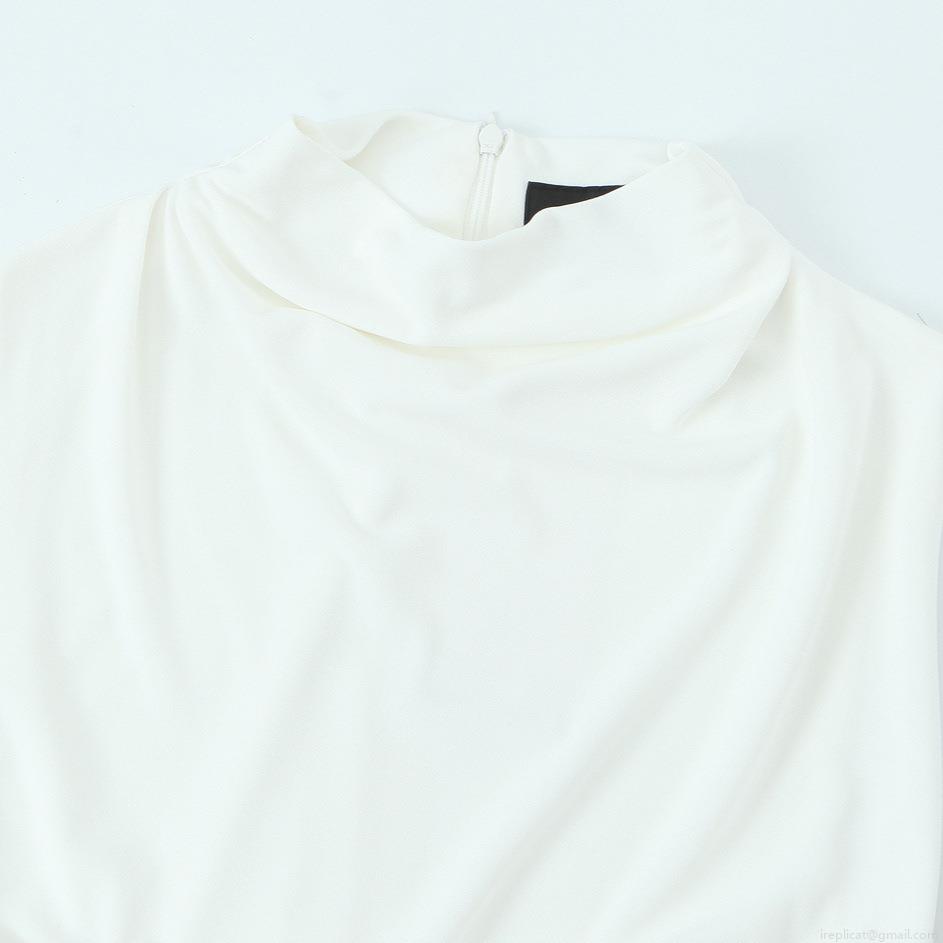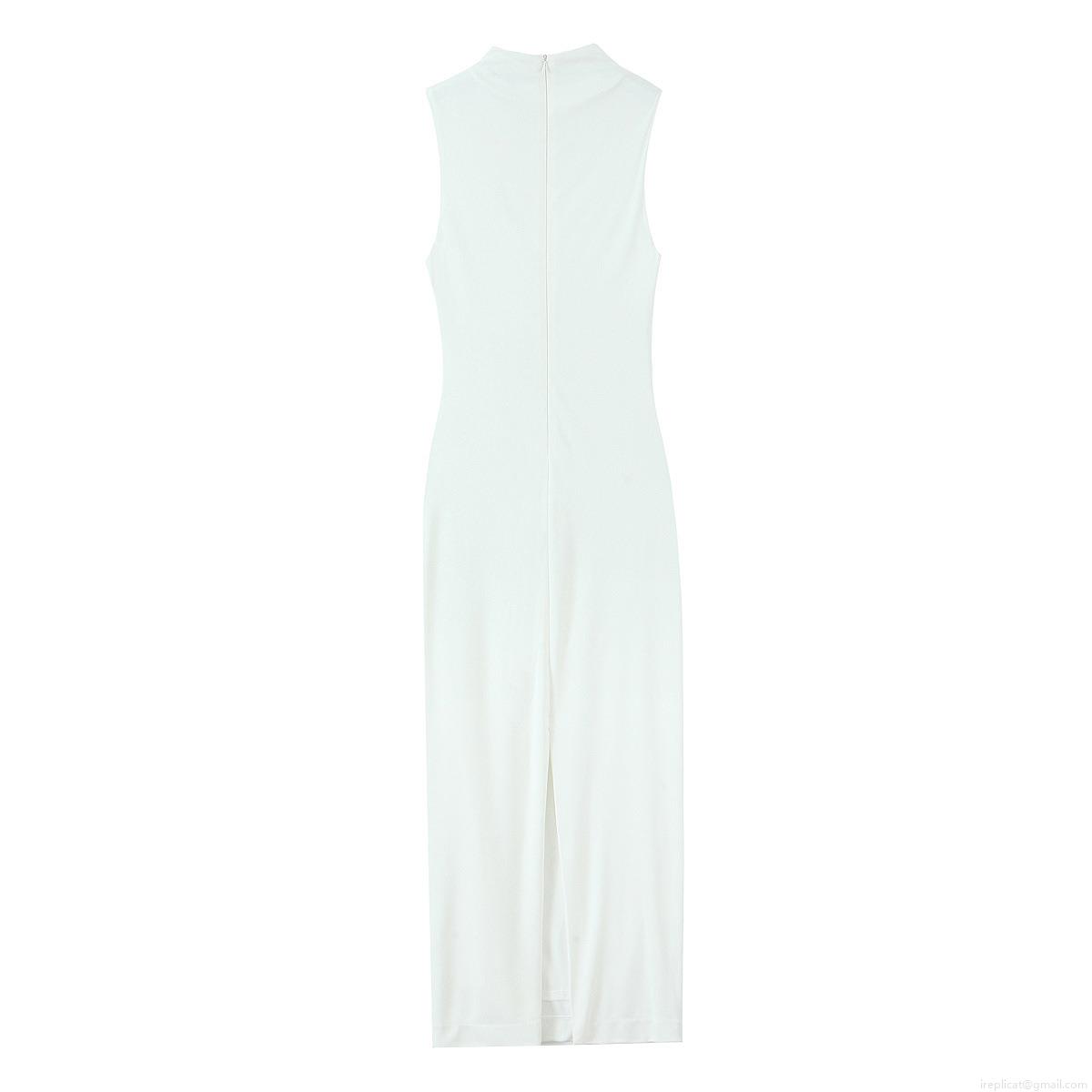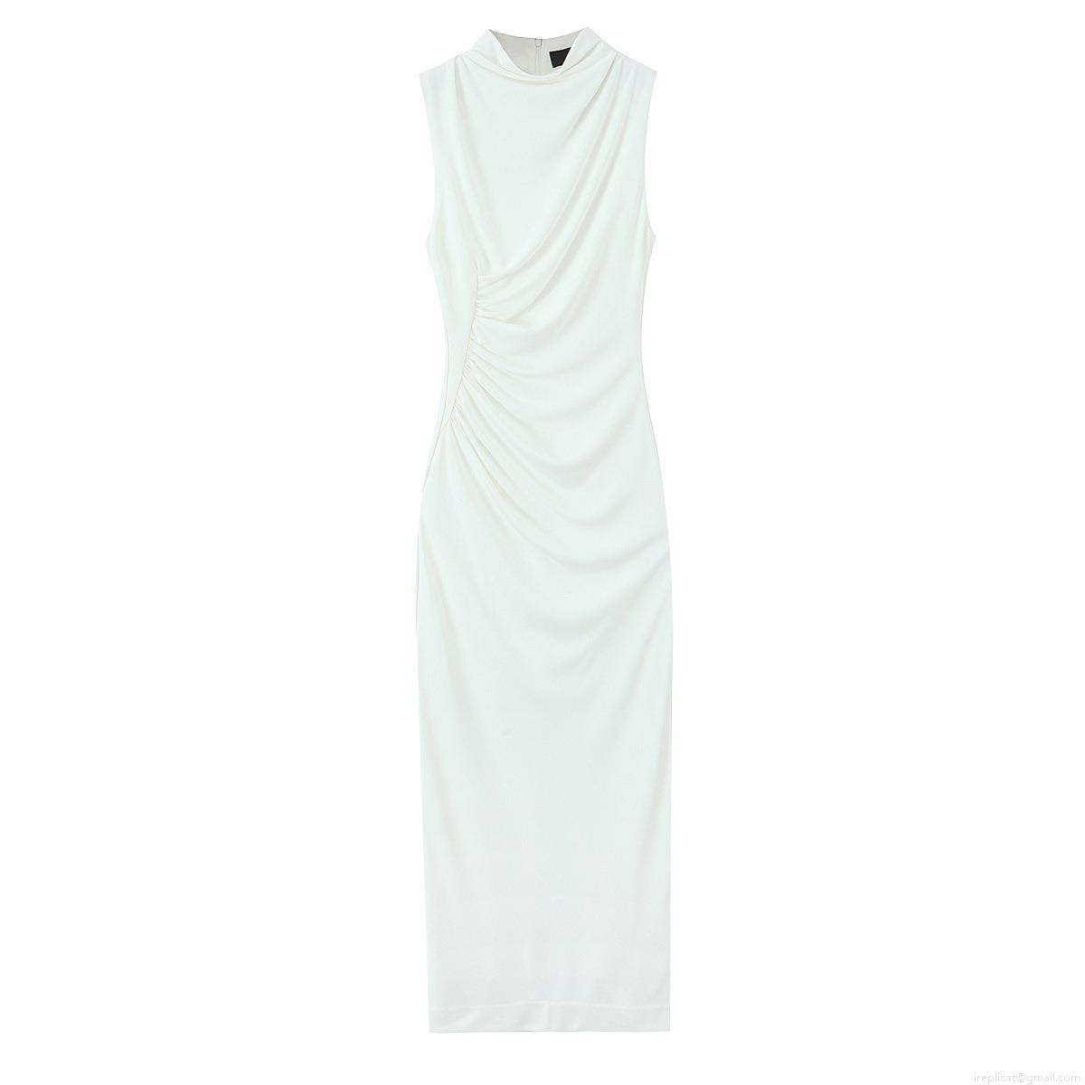 • Elegant White Sleeveless Ruched Midi Dress For Women Mock Neck Slim Fit Bodycon Back Zipper Slit Hem Evening Party Clubwear Polyester Spandex Dress