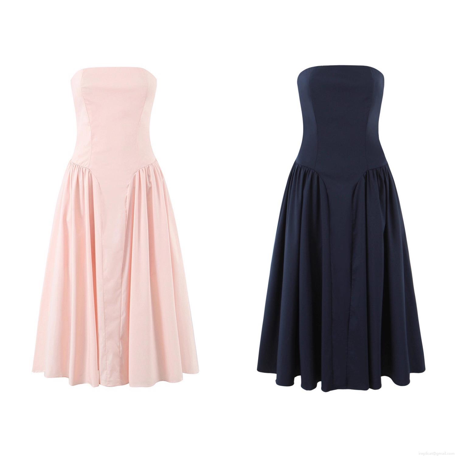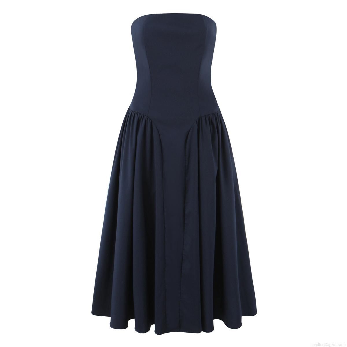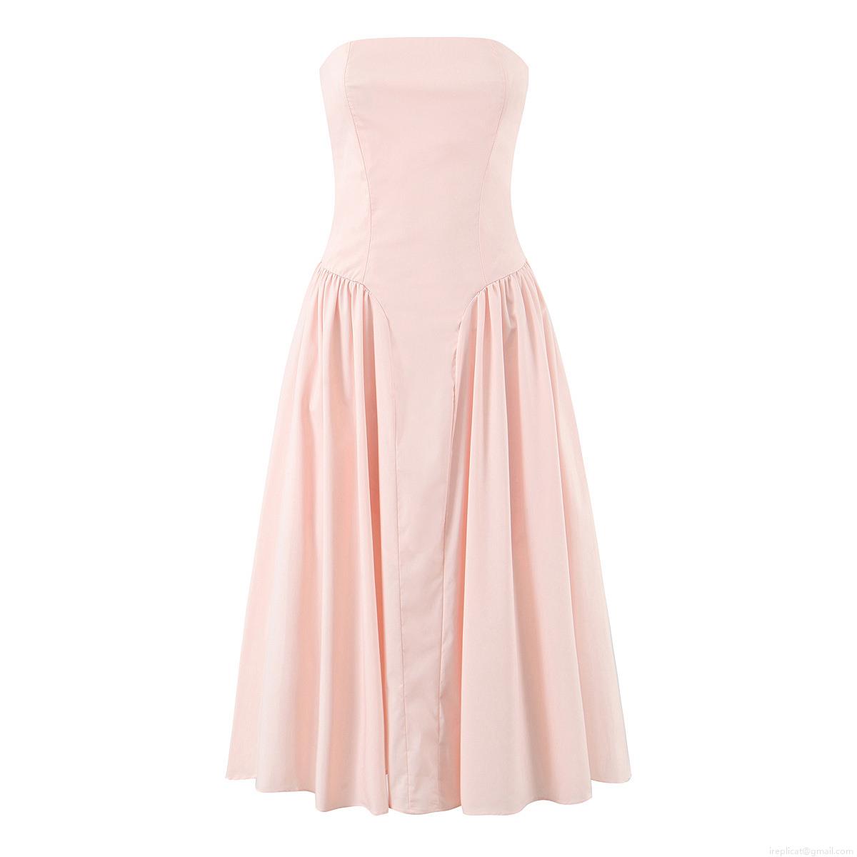 Solid Color, Back Strap, Strapless Design, Waist-cinching And Wide Skirt, Gathered Splicing