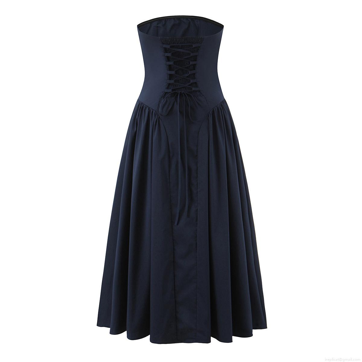 • Elegant Women Bandeau Dress Backless Lace Up Solid Color Flared A-Line Midi Dress Summer Beach Party Streetwear Cotton Blend Tube Top Dress