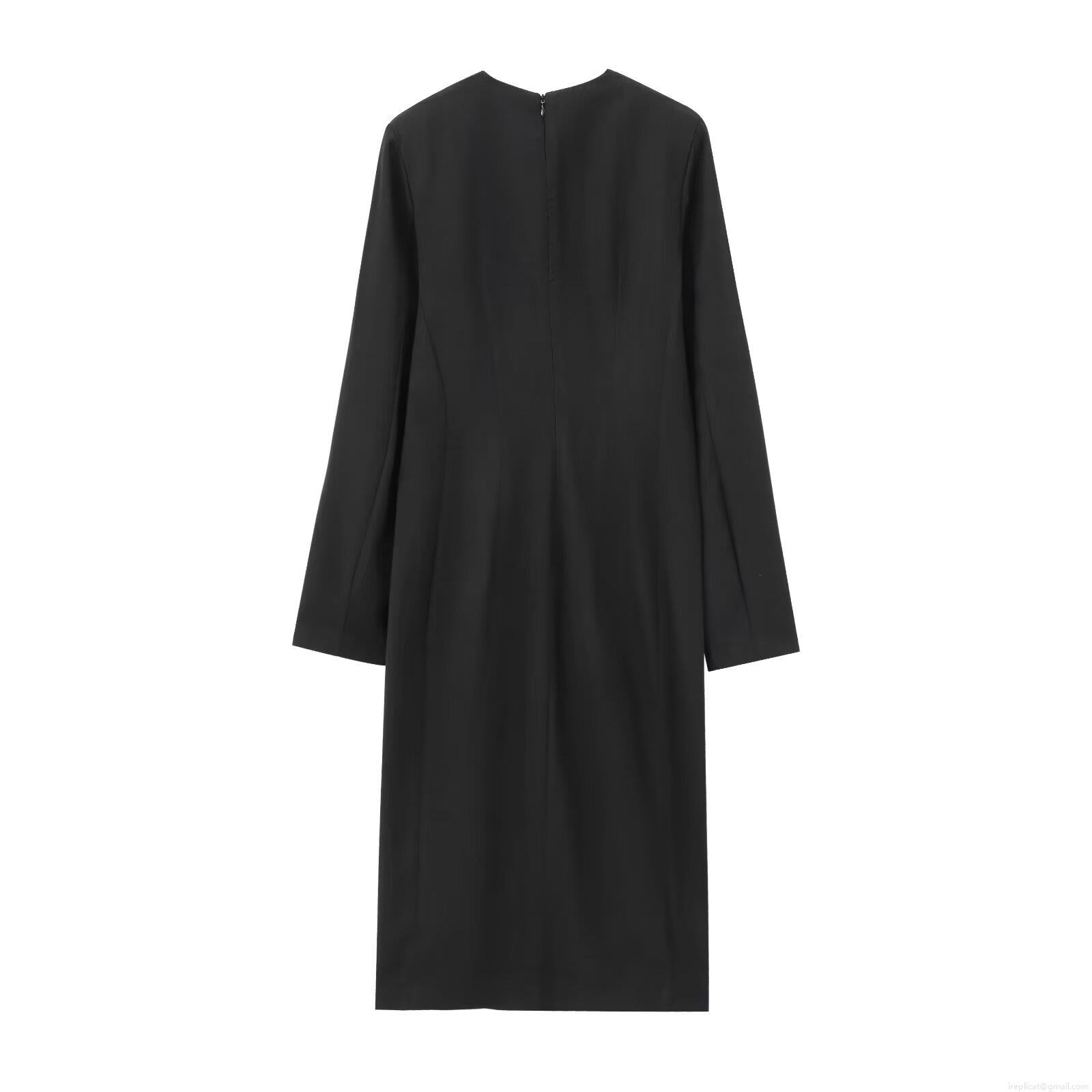 • Elegant Women Black V-Neck Long Sleeve Split Hem Maxi Dress Solid Color Polyester Starlight Hemp Bodycon Long Dress For Party Clubwear Evening Office Wear