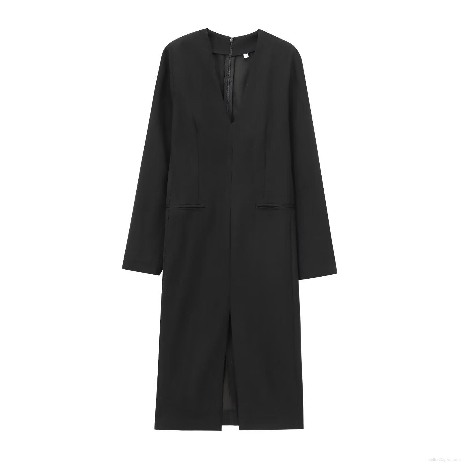 Solid Color, Deep V-neck, Invisible Zipper, Front And Center Split