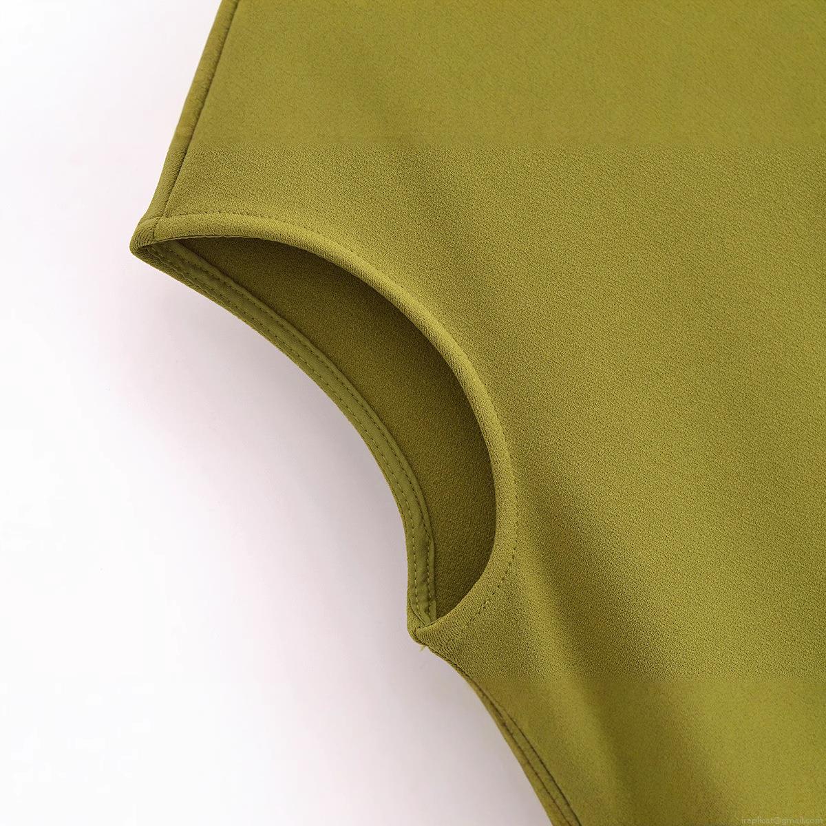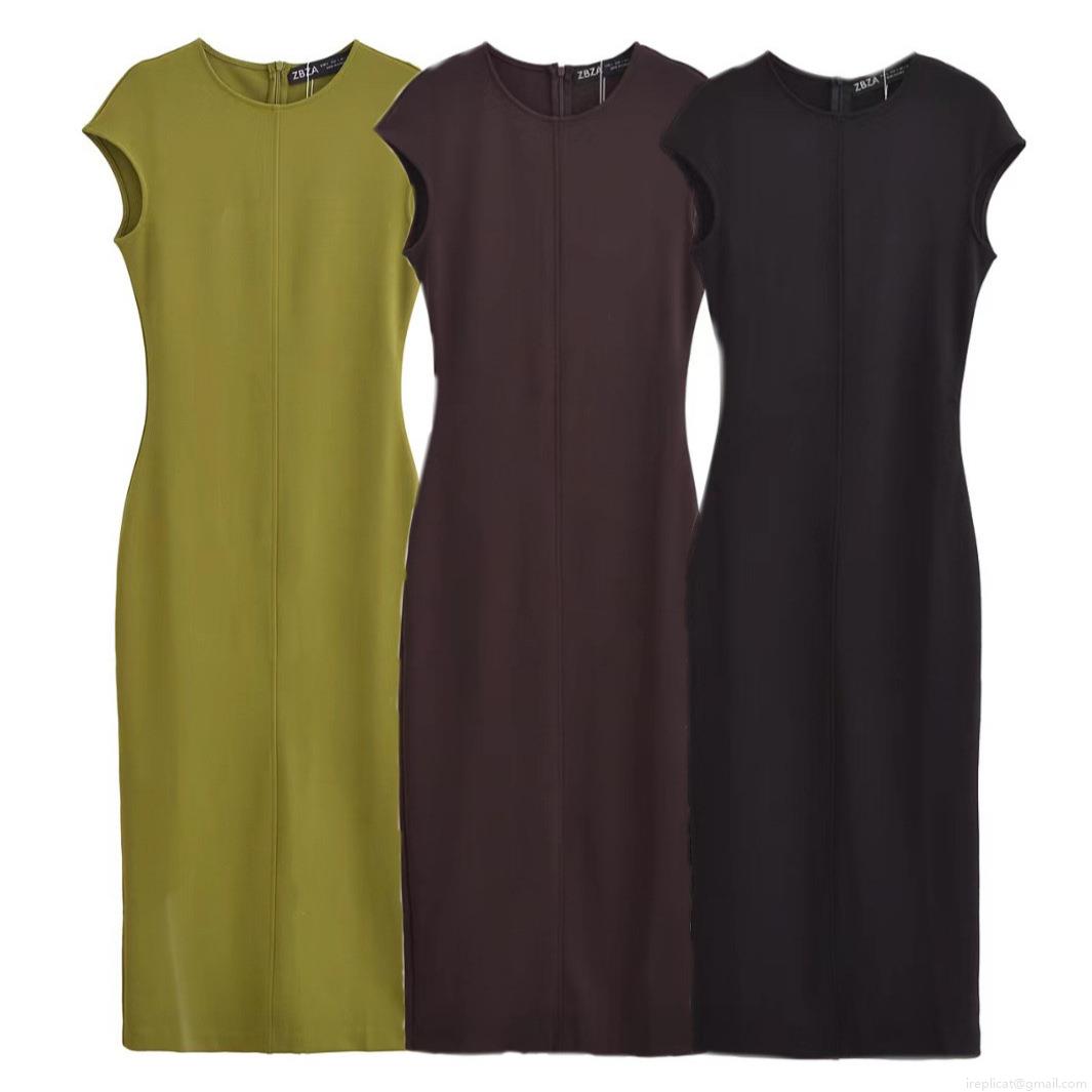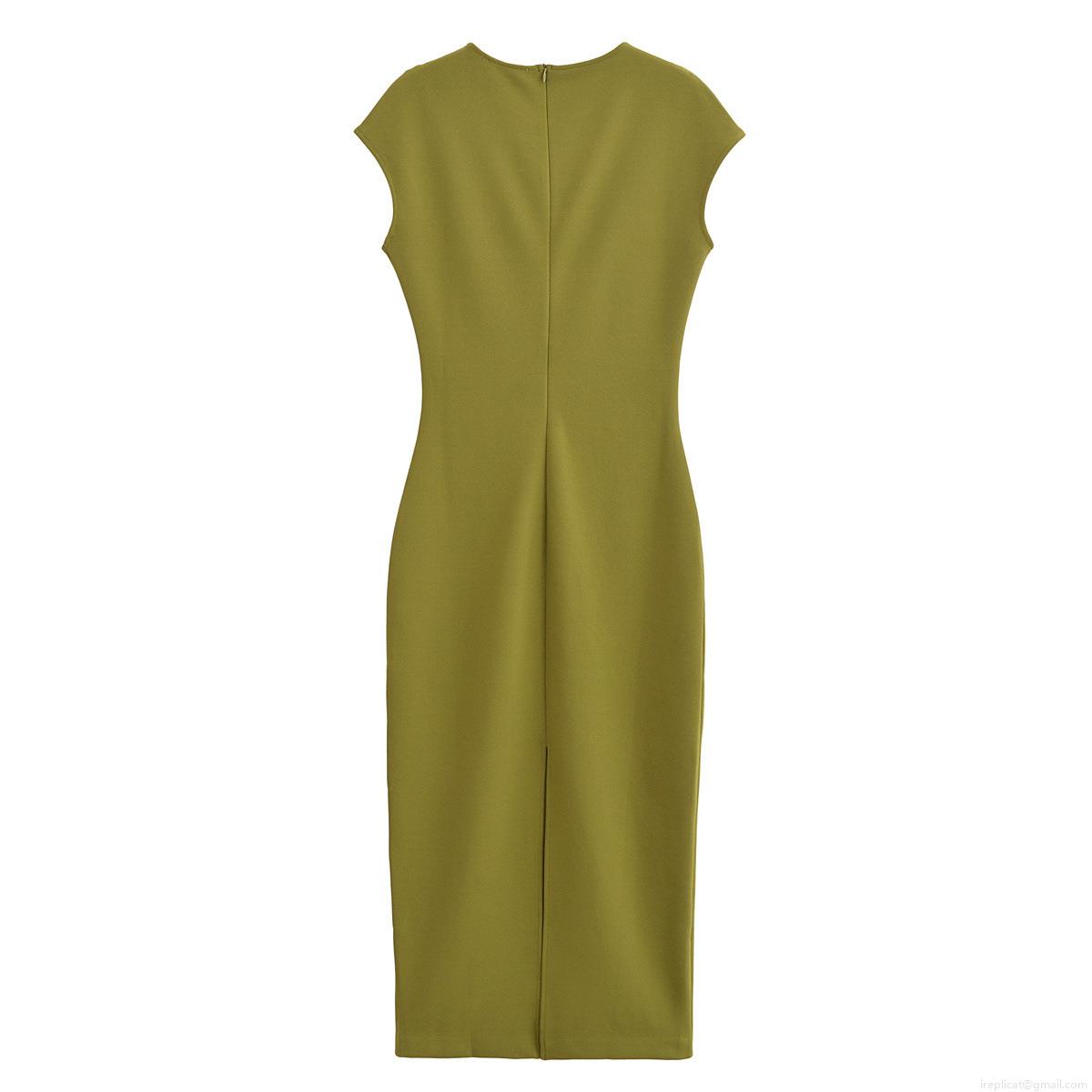 • Elegant Women Crew Neck Sleeveless Crepe Midi Dress Solid Color Slim Fit Bodycon Slit Hem Back Zipper Party Office Dress