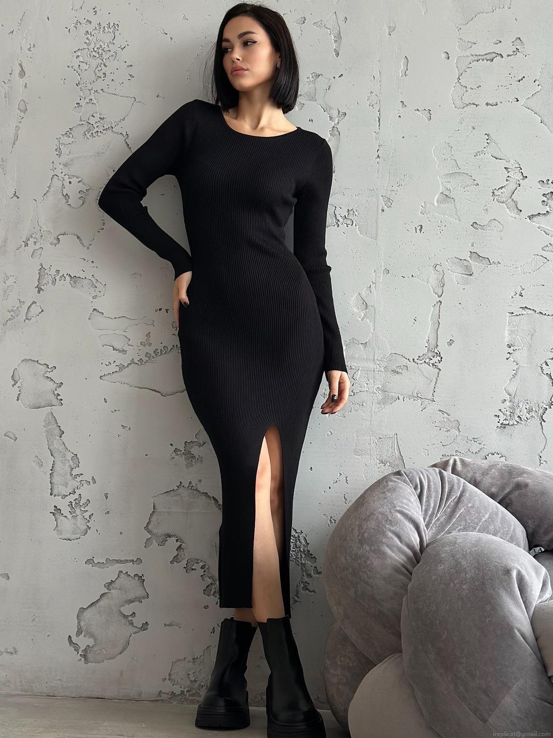 • Elegant Women Long Sleeve Ribbed Knit Midi Dress Sexy Side Slit Slim Fit Solid Color Bodycon Sweater Dress For Autumn Winter Party Clubwear