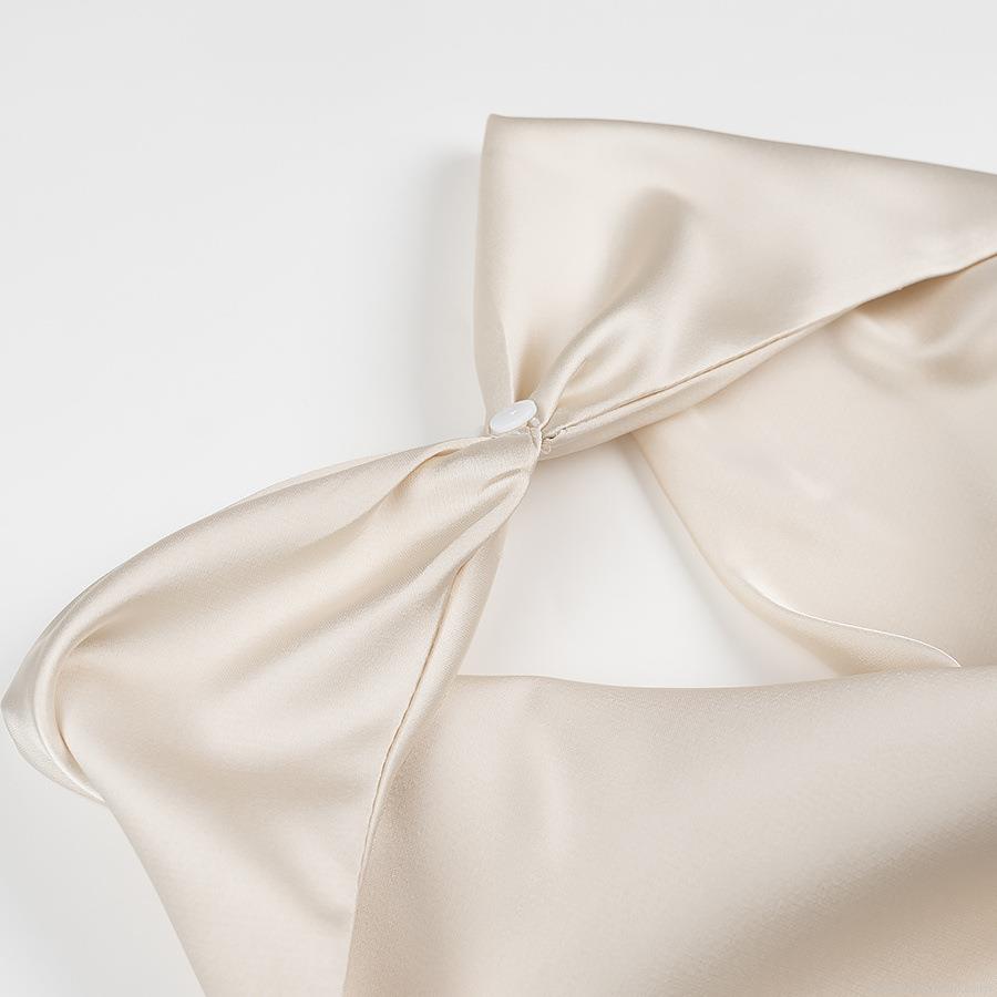 • Elegant Women Satin Halter Midi Dress Sexy V Neck 3D Flower Decoration Sleeveless Backless Party Dress Solid Champagne Polyester Evening Dress