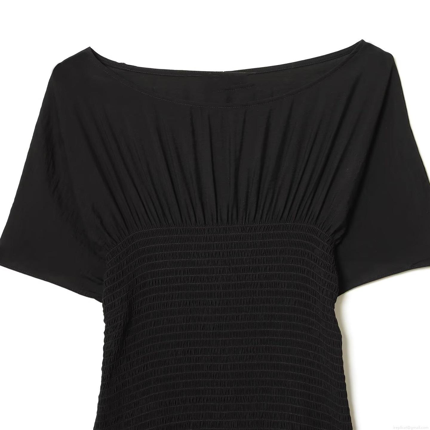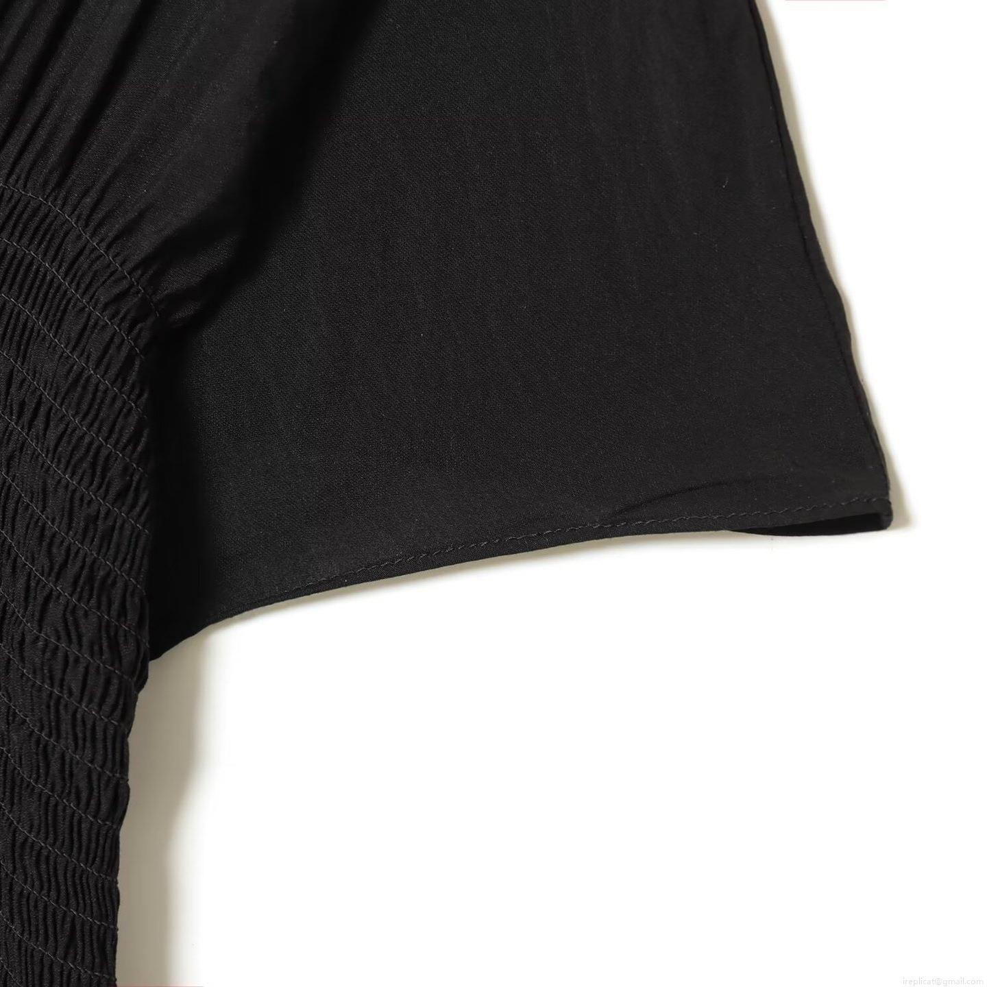 • Elegant Women Smocked Midi Dress Polyester Blend Puff Sleeve Crew Neck Shirred Waist Retro Solid Black Casual Party Long Dress