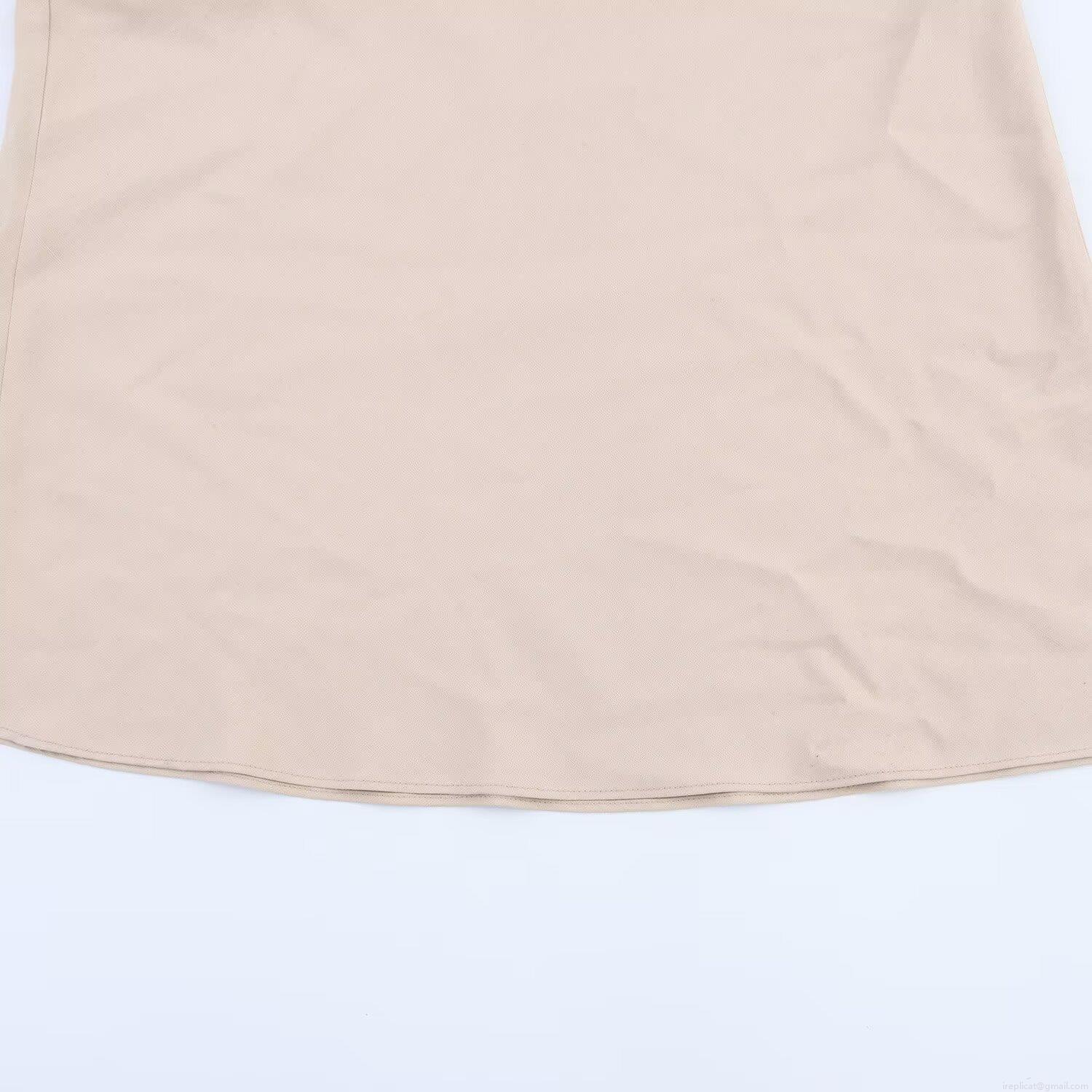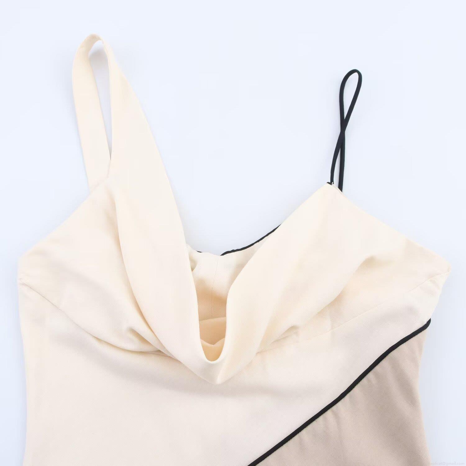 Elegant Women's Patchwork Satin Midi Dress Asymmetric Strap Ivory White Champagne Color Block Sleeveless U Neck Slip Dress for Summer Party Socialite Style