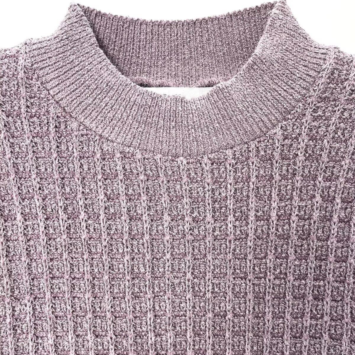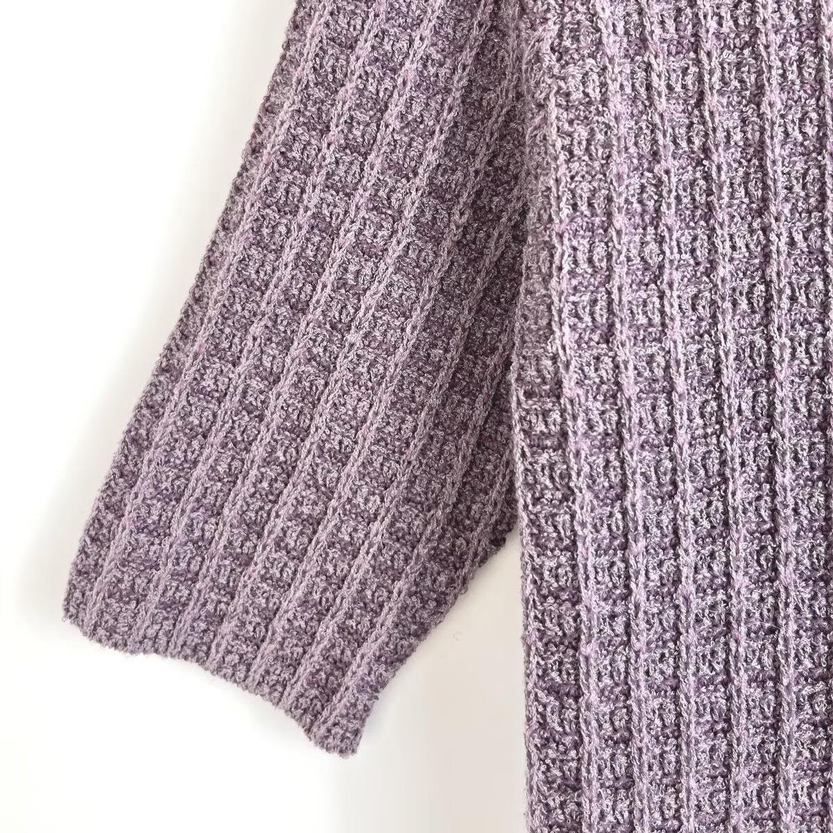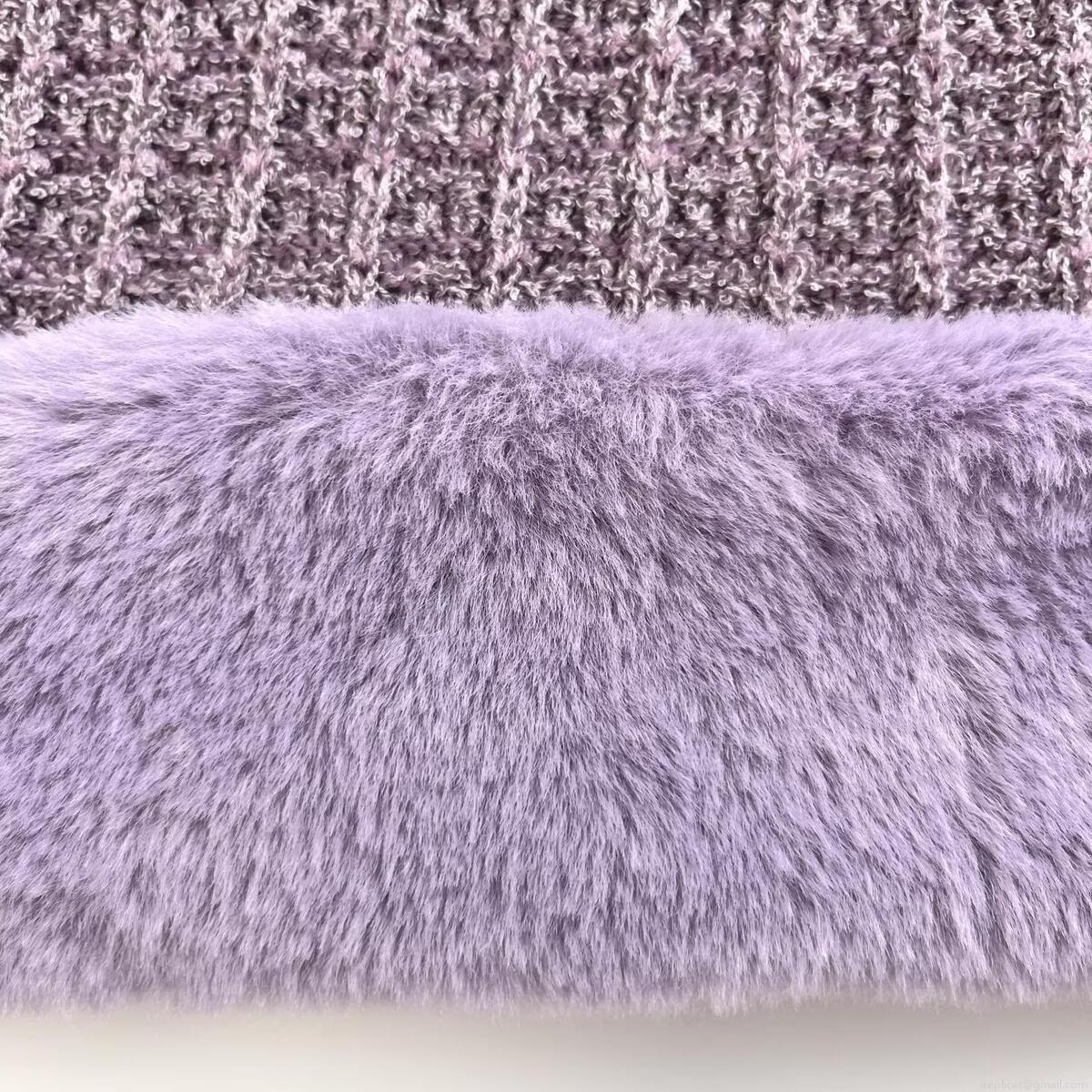 • Elegant Women's Purple Knitted Midi Dress With Faux Fur Trim Hem Puff Sleeve Round Neck Metal Buttons Patchwork Party Style Autumn Winter Clothing