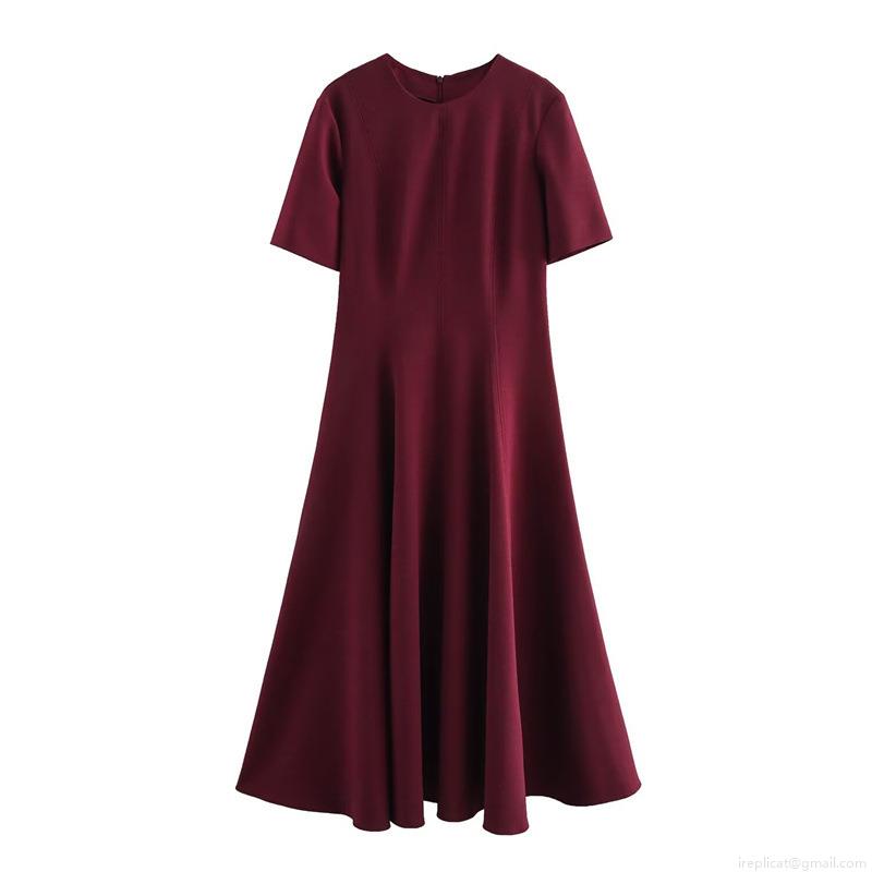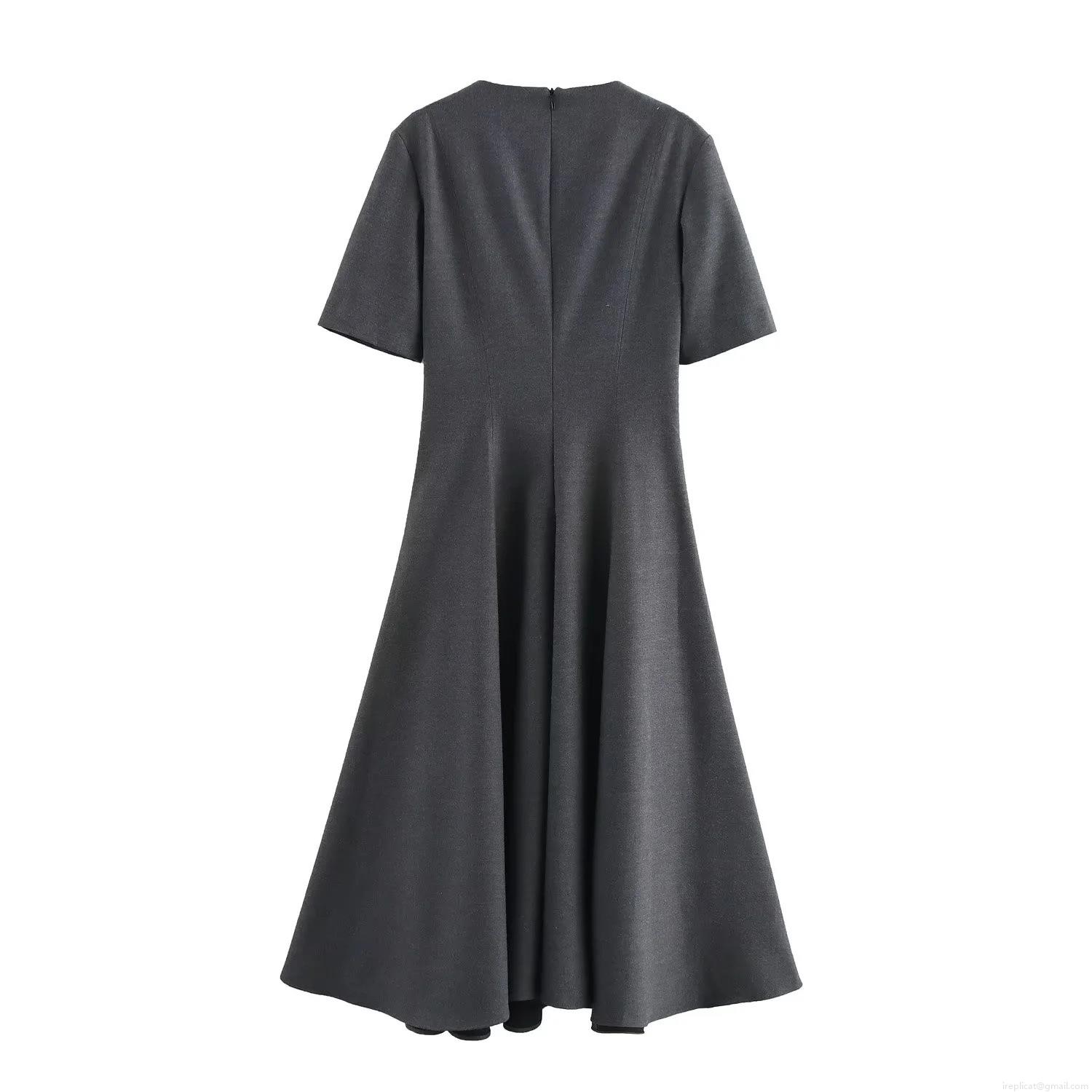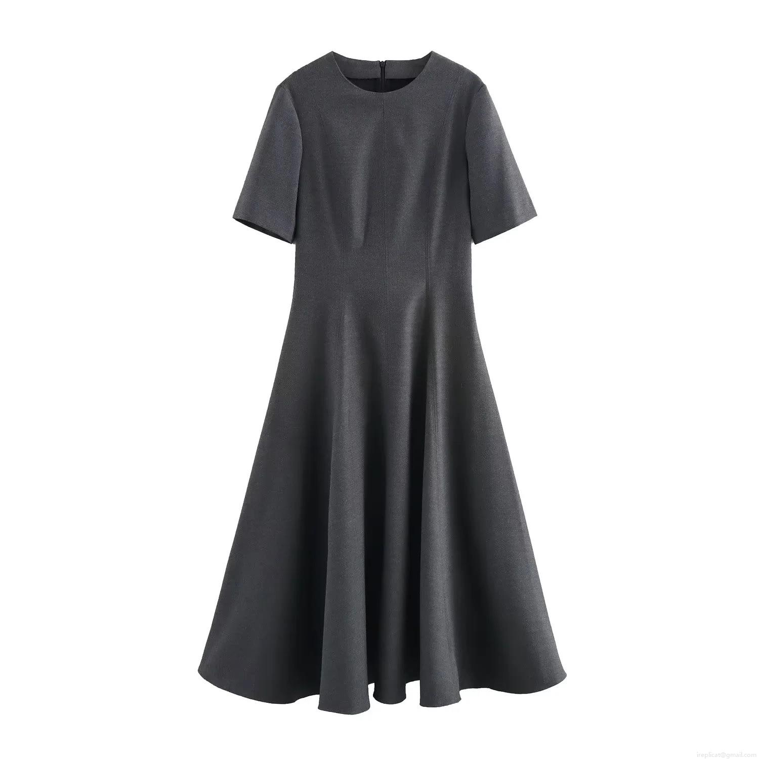 • Elegant Women's Short Sleeve Midi Dress Solid Color Slim Waist High Swing A-Line Polyester Dress For Daily Party Workwear