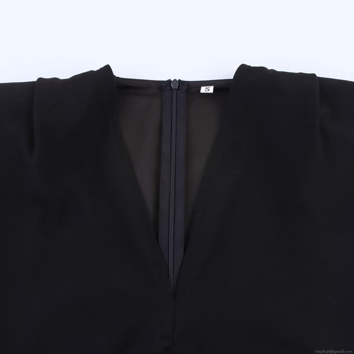 Solid Color, Pleats, V-neck, Shoulder Pads