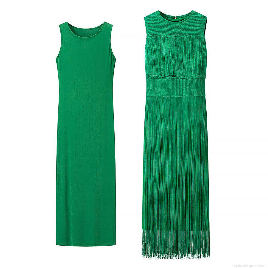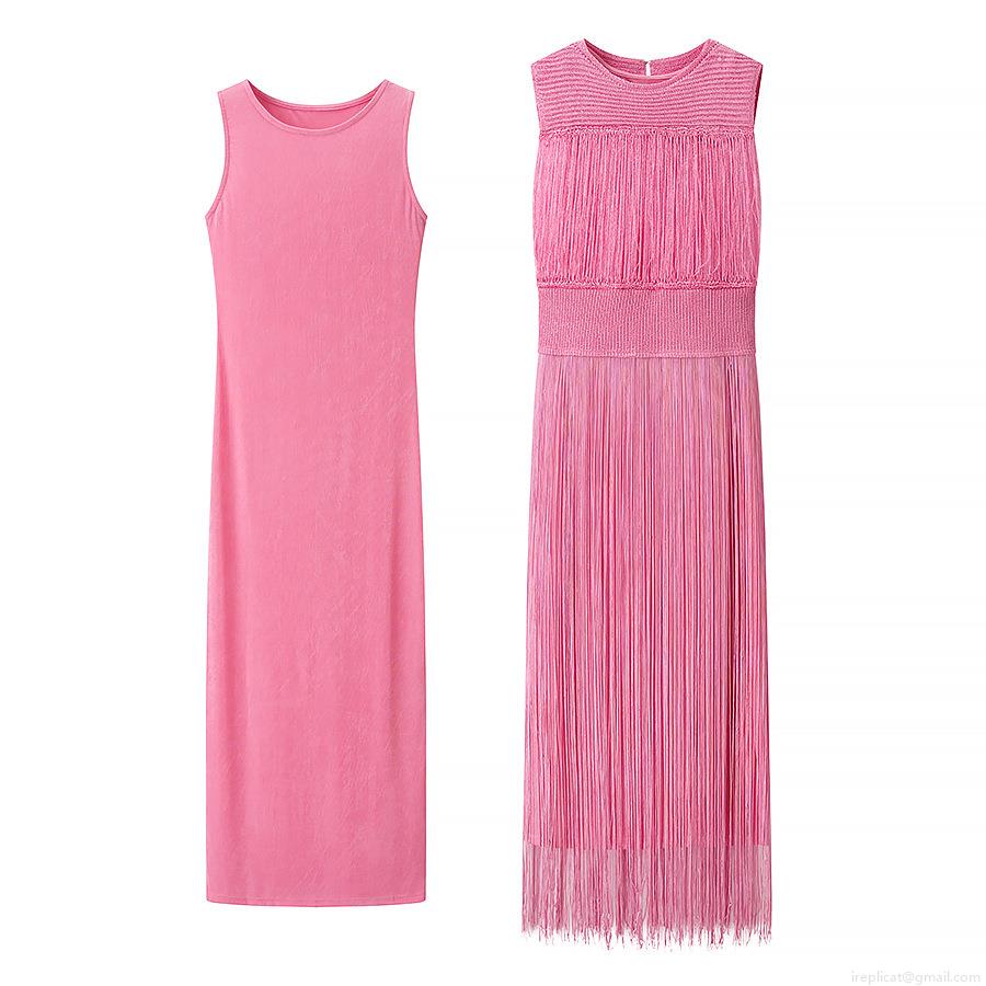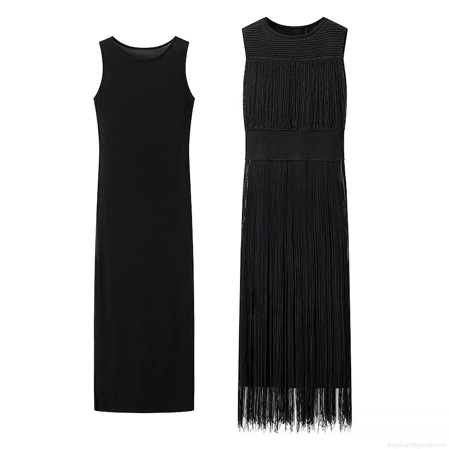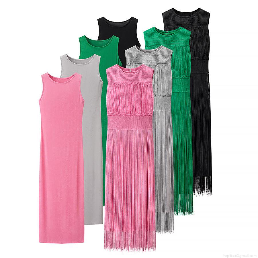 • Elegant Women's Two Piece Sleeveless Knit Tassel Maxi Dress Solid Color Round Neck Party Evening Bodycon Long Dress Set For Ladies