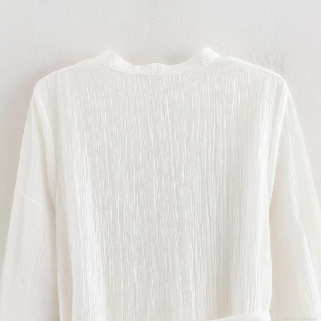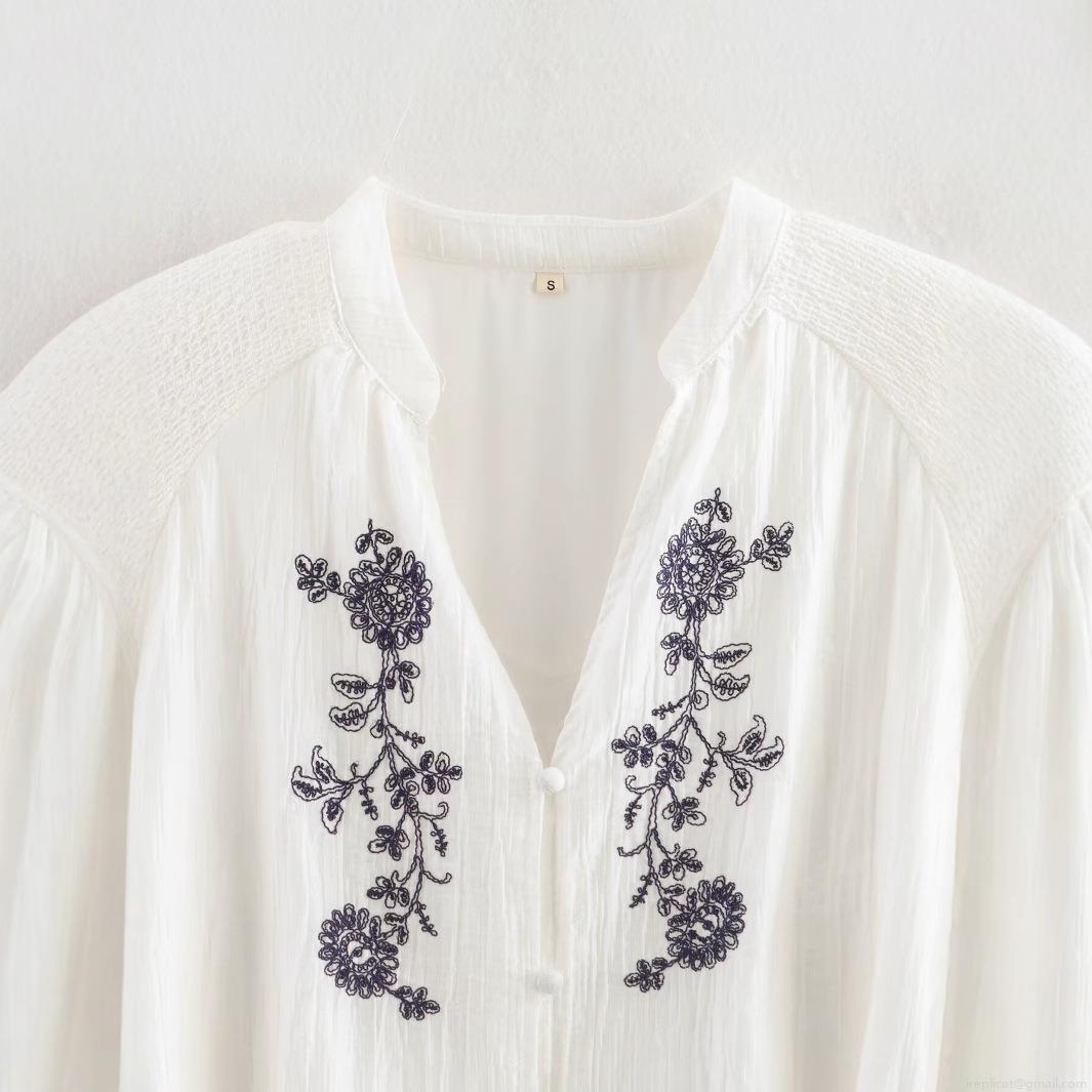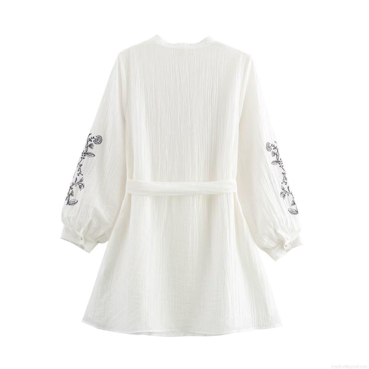 • Fashion V-Neck Long Sleeve Floral Embroidery Midi A-Line Dress with Belt 100% Polyester Street Style Casual White Dress for Women Party Vacation