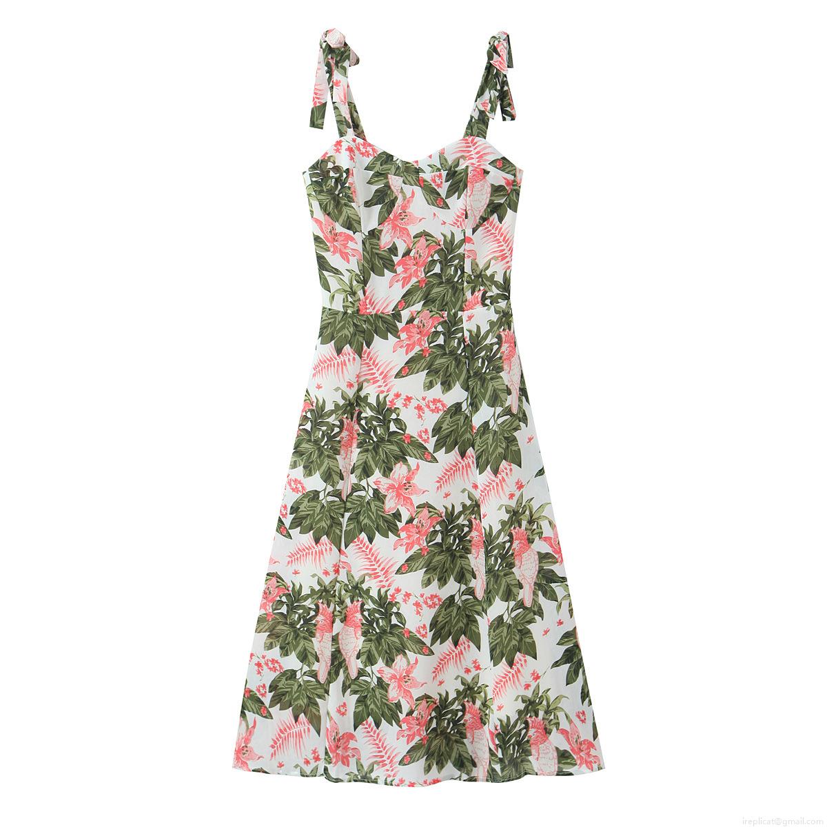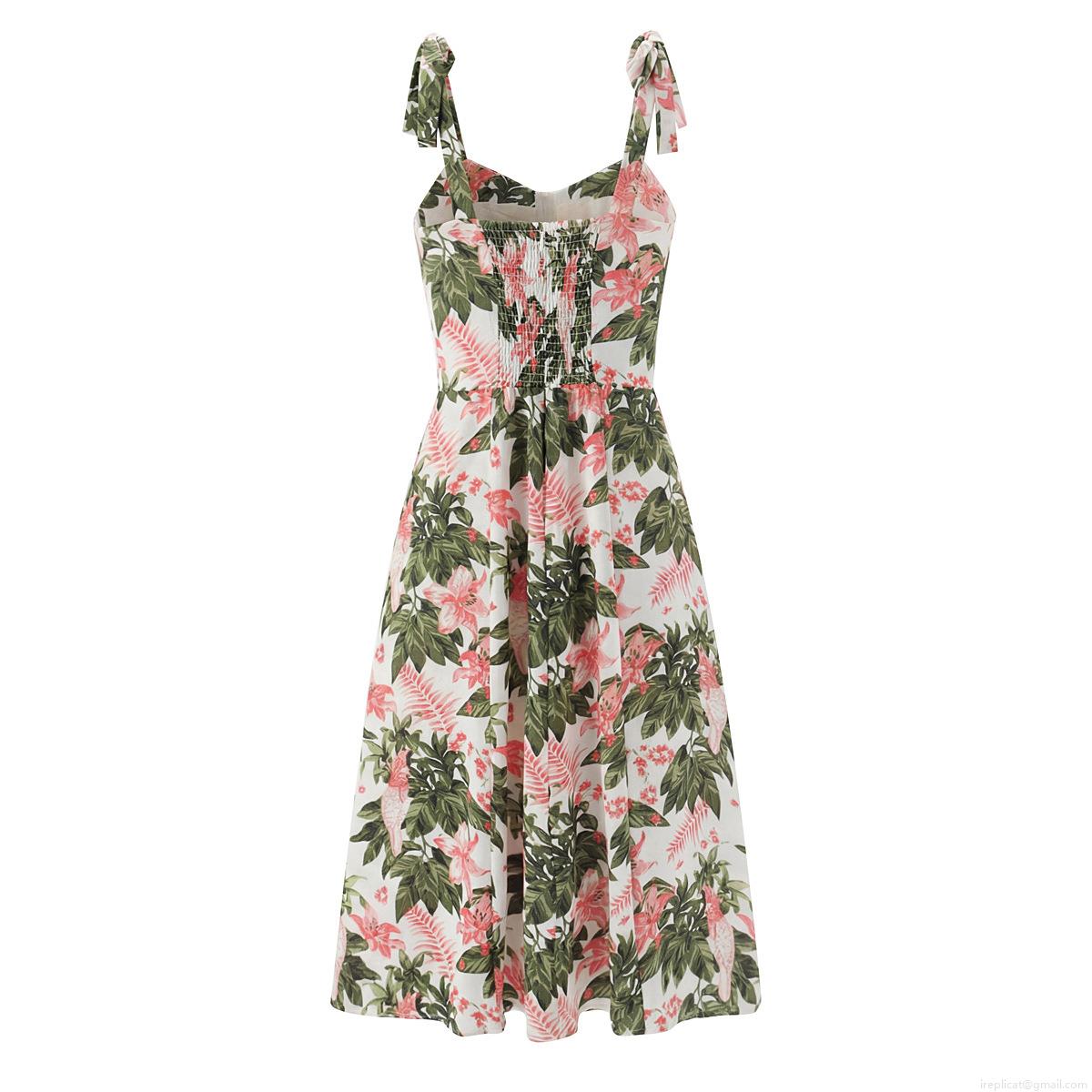 French Floral Sexy Strappy Bow Knot Big Swing Dress 100% Polyester Sweetheart Neck Sleeveless Back Smocking Midi Dress Women Vacation Beach Party Summer Wear