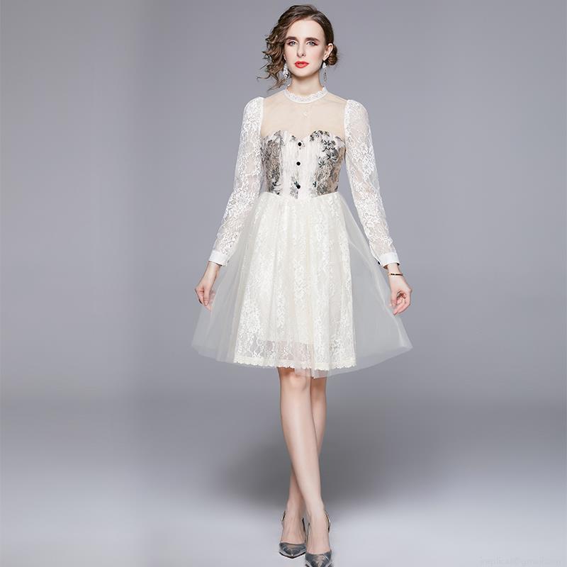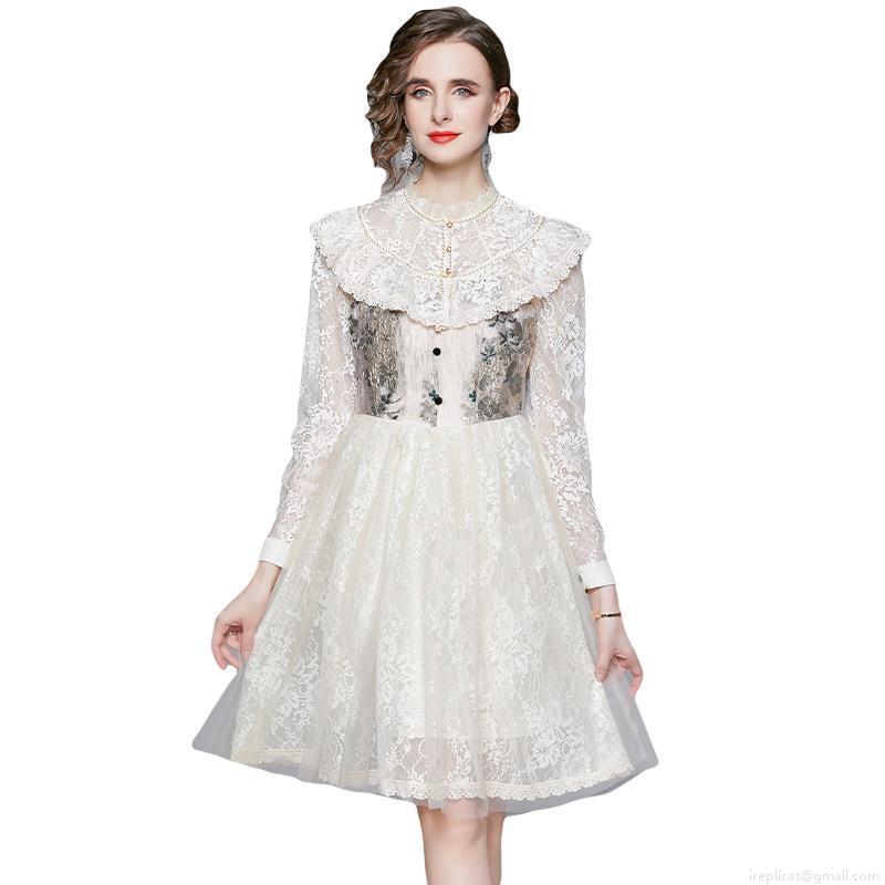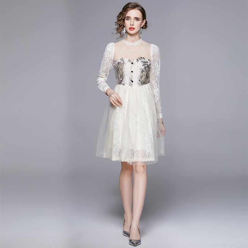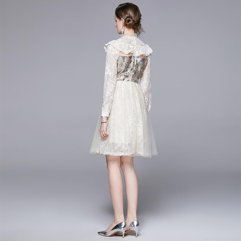 Floral, Lace Patchwork, Cutout Details, Embroidery Decoration, Multi-layer Mesh, Ruffled Collar