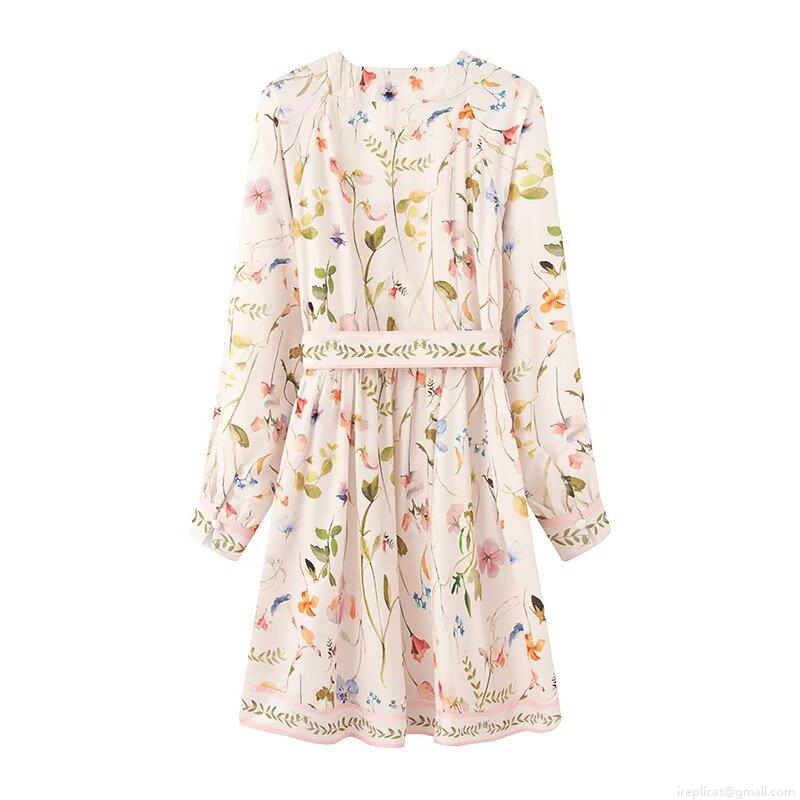 • French Style V-Neck Wrap Dress Elegant Floral Print Long Sleeve Polyester Blend Midi Dress With Waist Tie For Women Casual Vacation Spring Outfits