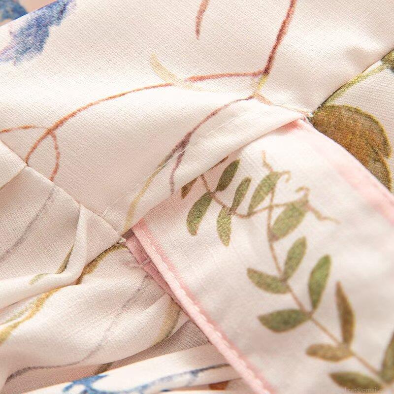 Floral Pattern, Plants And Flowers, V-neck, Floral Print, Waist Tie, Wrap-up