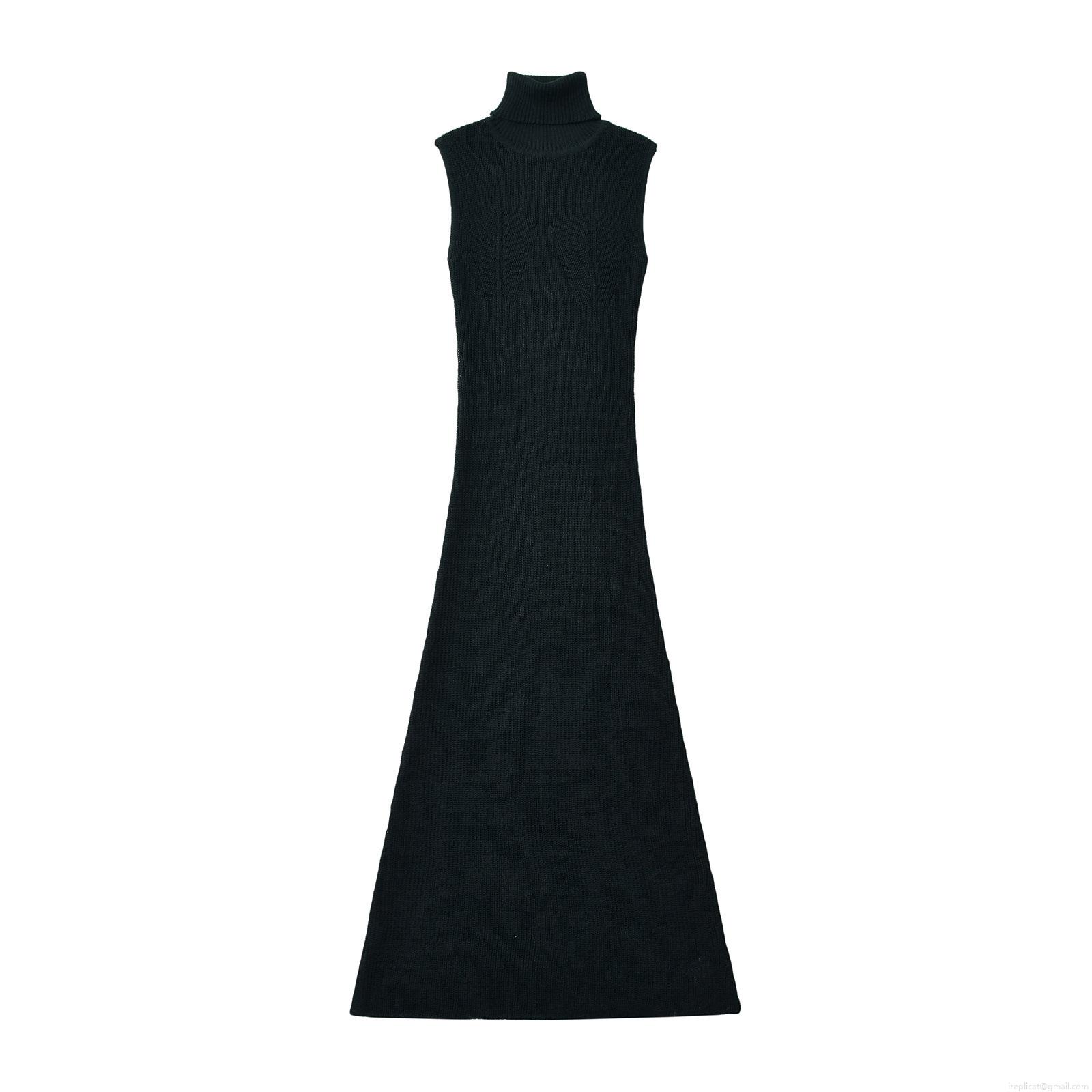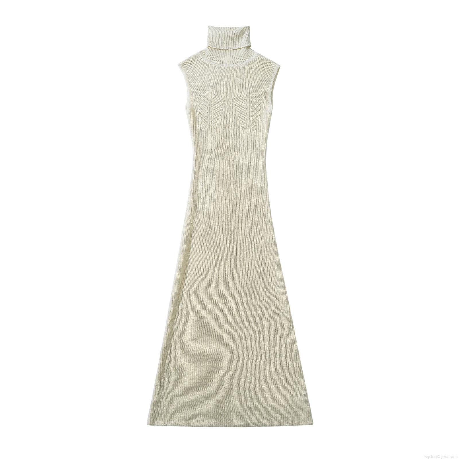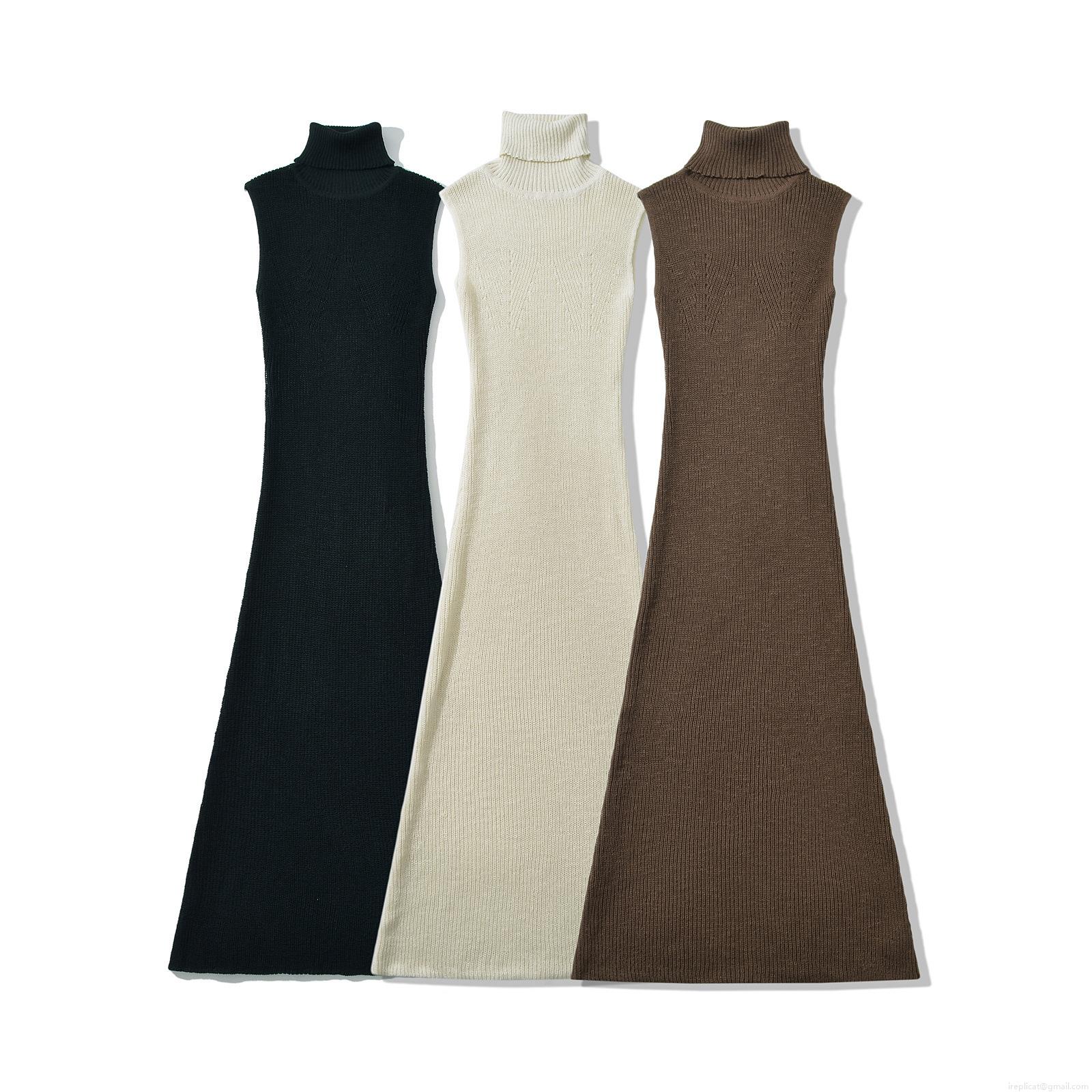 • High Neck Sleeveless Knit A-Line Midi Dress For Women Solid Color Viscose Nylon PPT Ribbed Texture Elegant Streetwear Party Dress