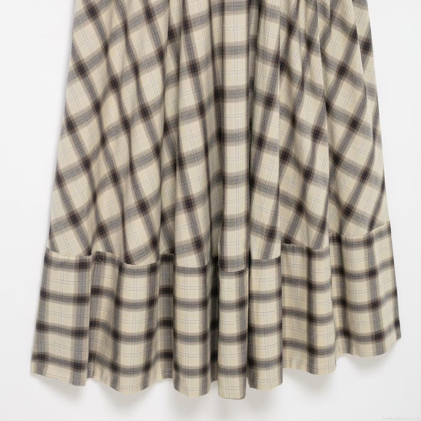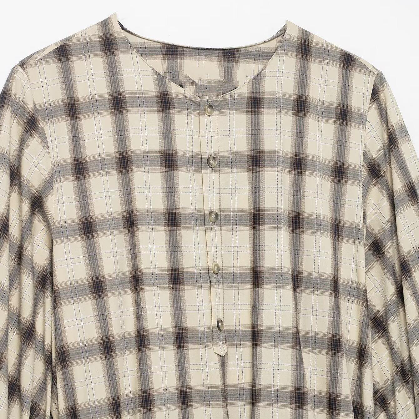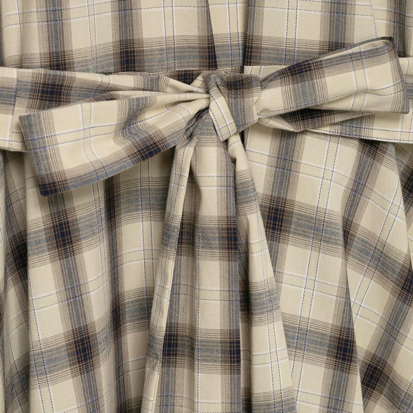 • Retro Plaid Midi Dress For Women Casual Elastic Polyester Spandex Shirt Dress With Lantern Sleeve And Tie Waist Long Sleeve Button Down A-Line Dress