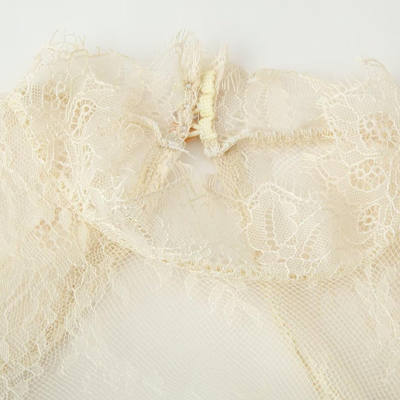 Color Blocking, Flowers, Backless, Lace Patchwork, Bell Sleeves, Eyelashes