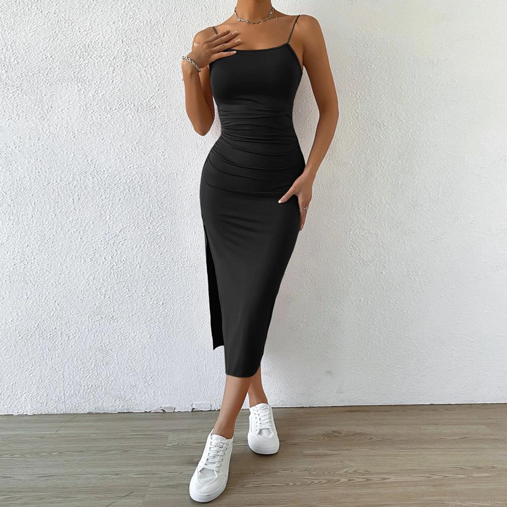 • Sexy Backless Midi Dress Viscose Spandex Slim Fit Side Split Camisole Hip-Wrap Bodycon Dress For Party Evening Club Women