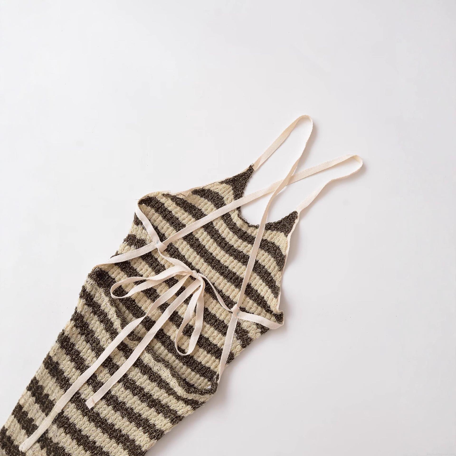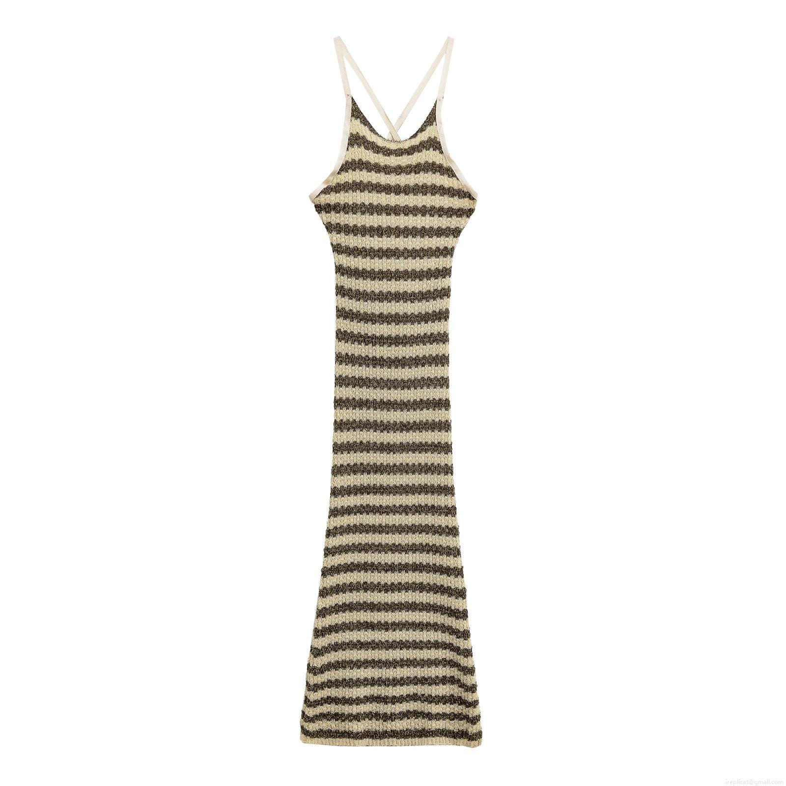 • Sexy Backless Stripe Knit Cami Dress Women's Cross Halter Contrast Color Metallic Yarn Bodycon Midi Dress For Party Vacation Clubwear