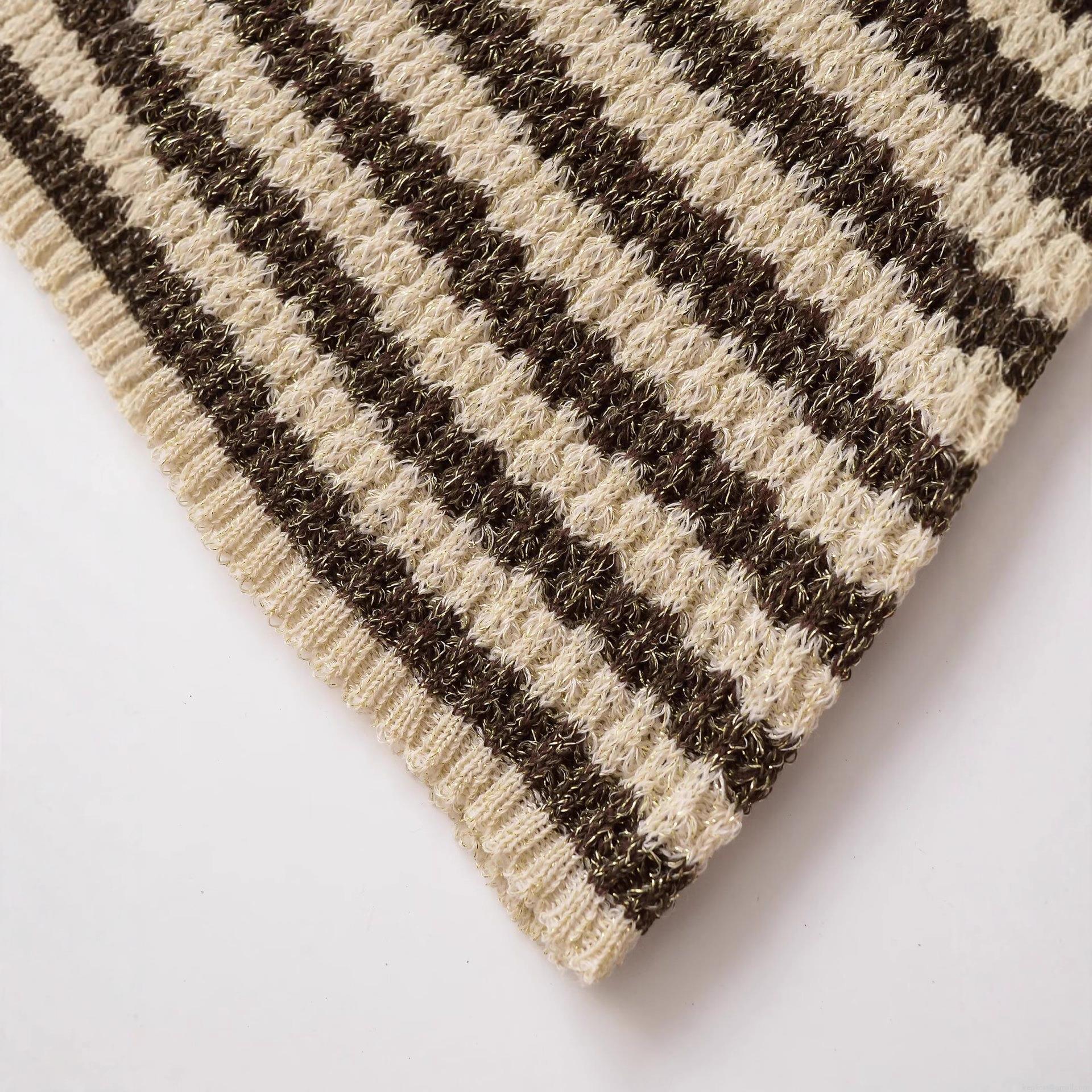 Sexy Backless Stripe Knit Cami Dress Women's Cross Halter Contrast Color Metallic Yarn Bodycon Midi Dress For Party Vacation Clubwear