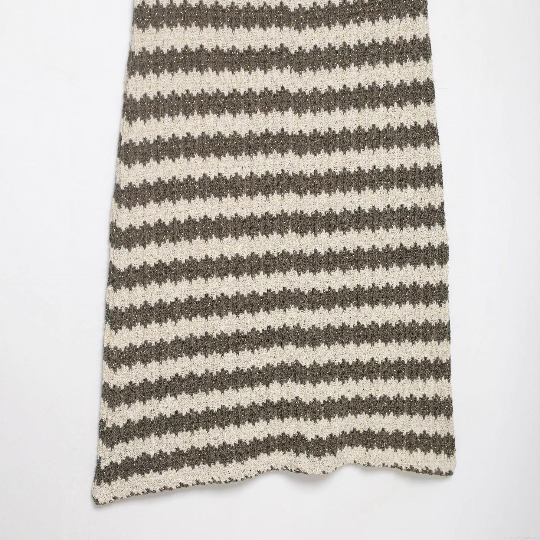 • Sexy Backless Striped Knitted Midi Dress Women Halter V Neck Cross Strappy Sleeveless Club Party Wear Street Style With Gold Lurex Polyester