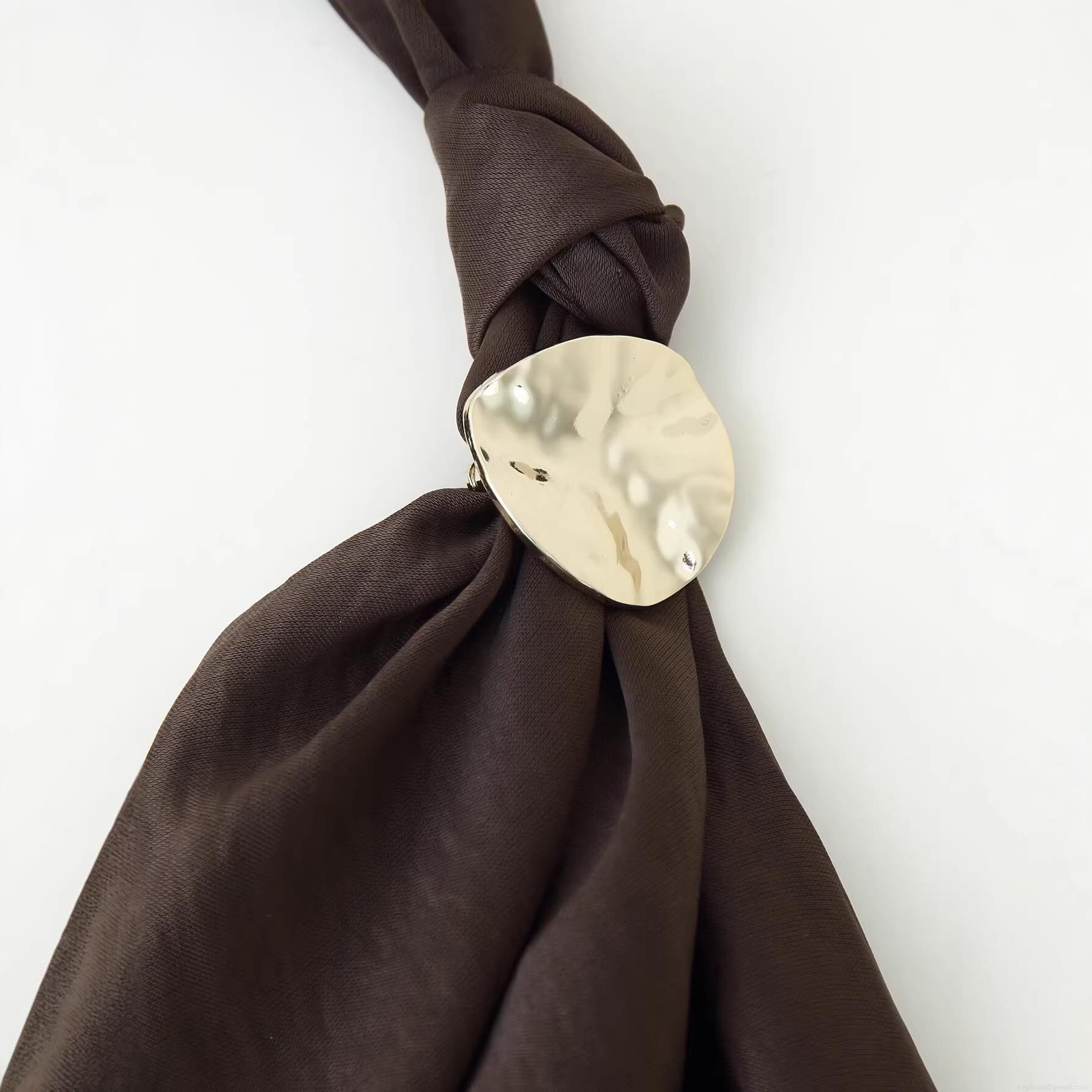 Sexy Cowl Neck Halter Satin Midi Dress Asymmetric Backless Ruched Bodycon Party Evening Coffee Brown Slip Dress with Metal Ring Decoration