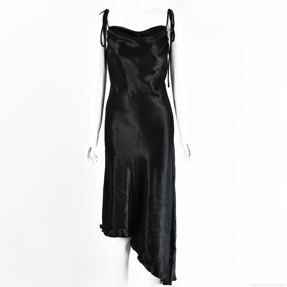 Sexy Cowl Neck Satin Midi Dress Spaghetti Strap Backless Asymmetric Hem High Slit Evening Party Dress For Women Bodycon Clubwear