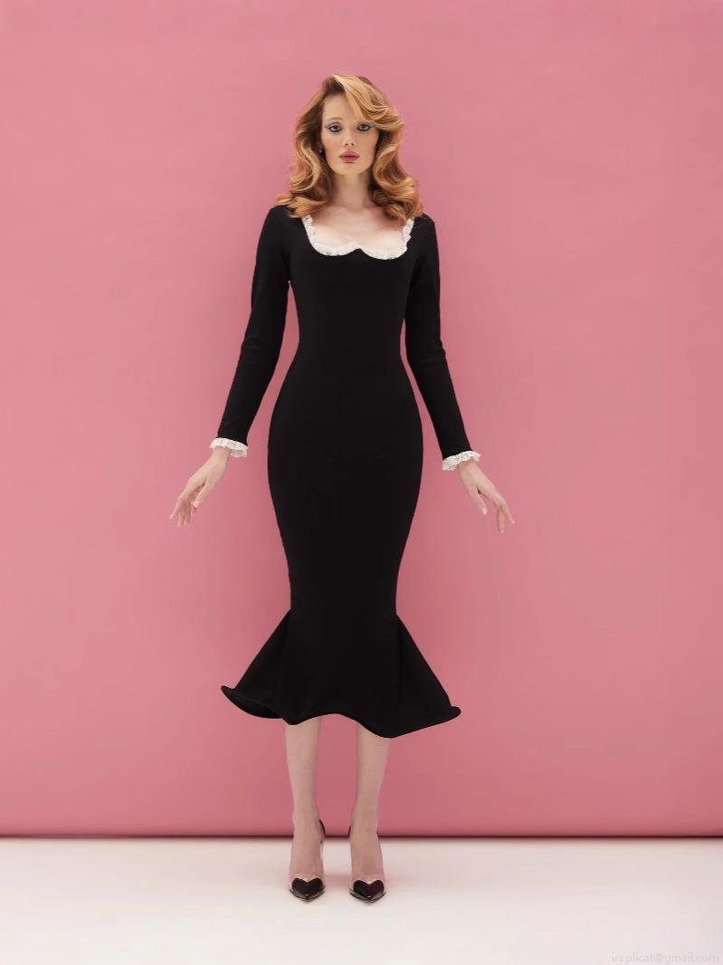 Sexy Fishtail Dress Long Sleeve Square Neck With Lace Trim Heart Cutout Back Polyester Spandex Blend Midi Party Dress Elegant Women Slim Fit Clothing
