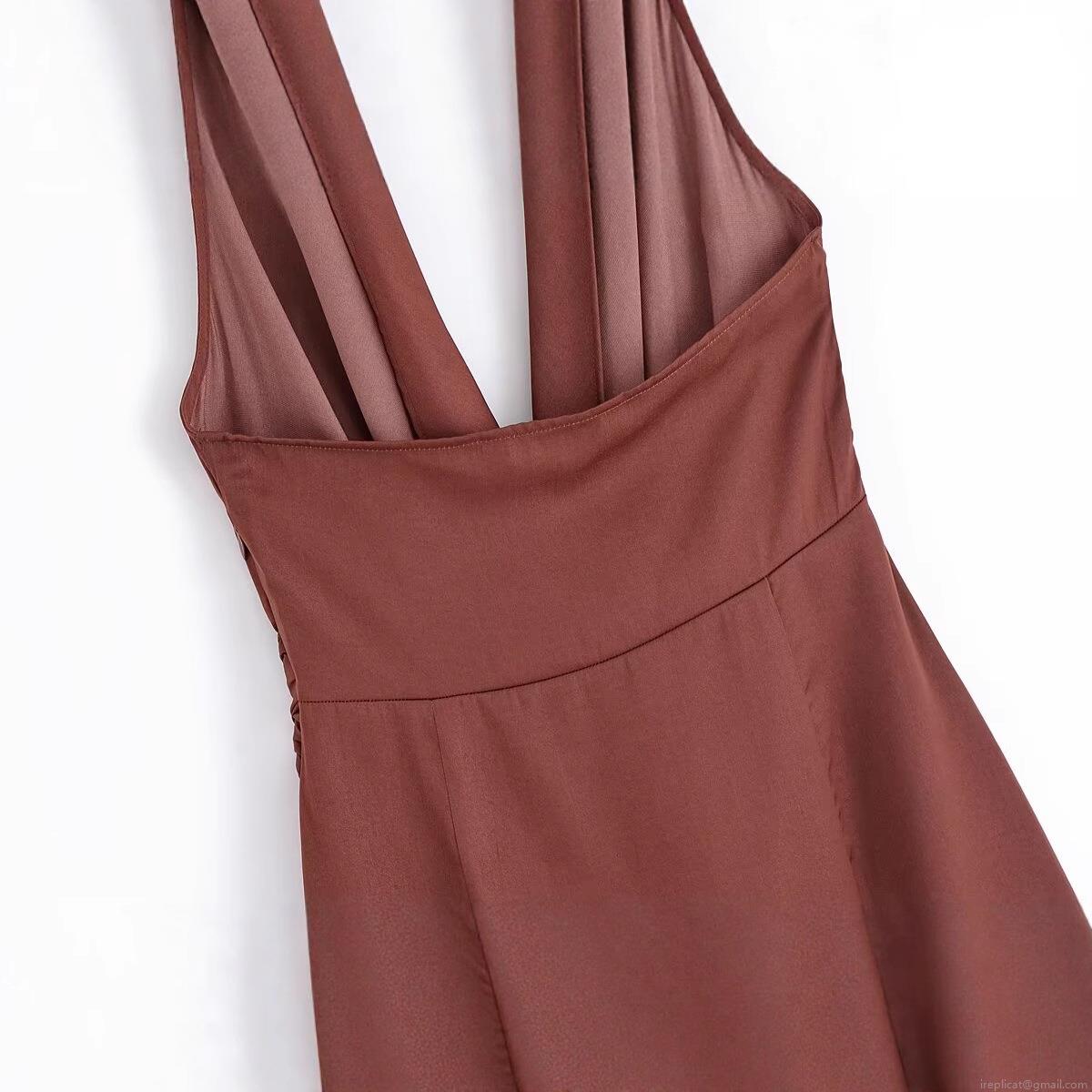 • Sexy Halter Backless Midi Dress For Women Summer Satin Polyester Draped Neck Deep V Dress Metal Buckle Elegant Party Evening Club Cocktail Streetwear Dress