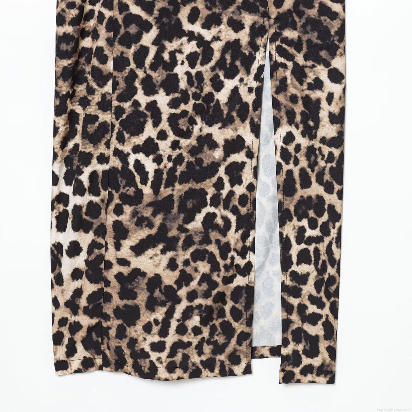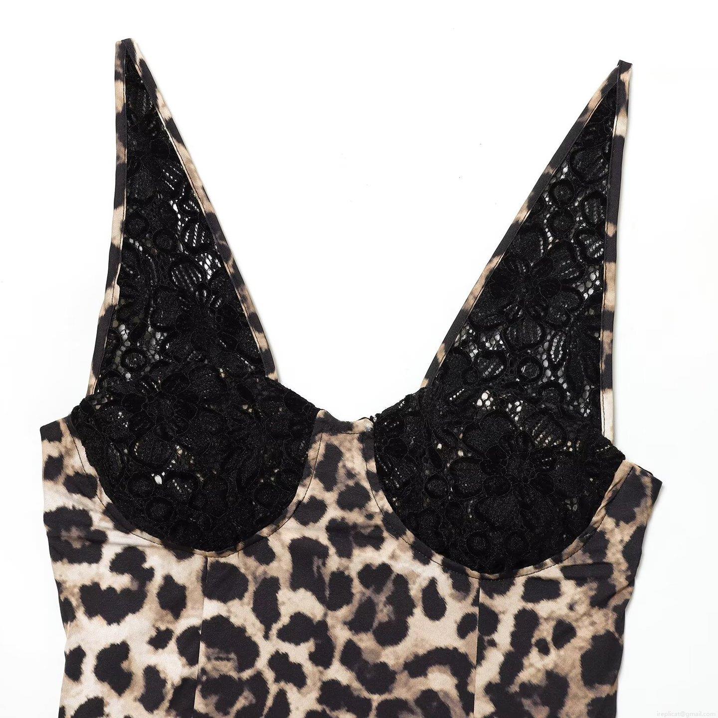 Leopard Print, Animal Print, V-neck, Lace Patchwork, Side Fork
