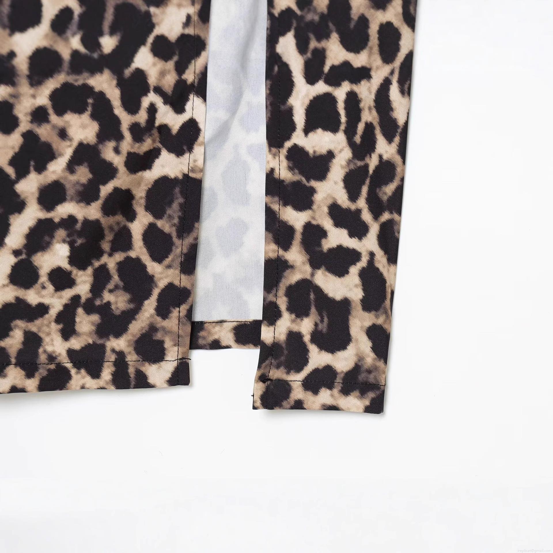 Leopard Print, V-neck, Lace Patchwork, High Slit, Abstract Floral Pattern