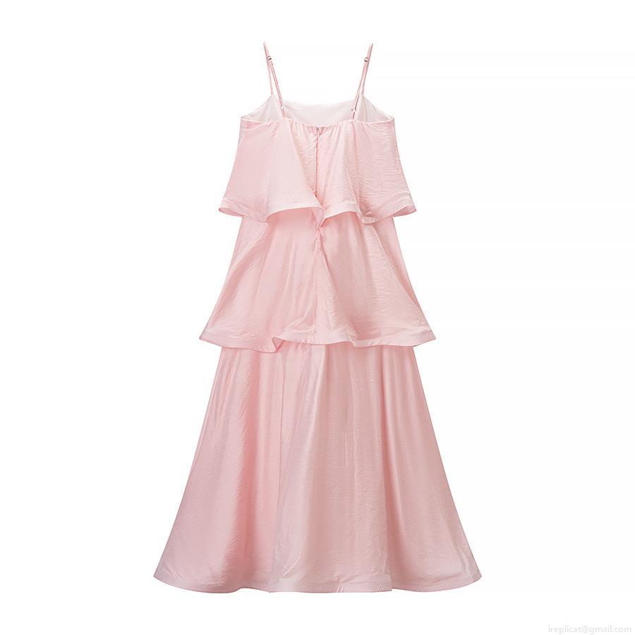 • Sexy Pink Tiered Ruffle Cami Dress Women's Elegant Adjustable Thin Strap Multi-Layer Cake Midi Dress For Summer Party Club Nightwear