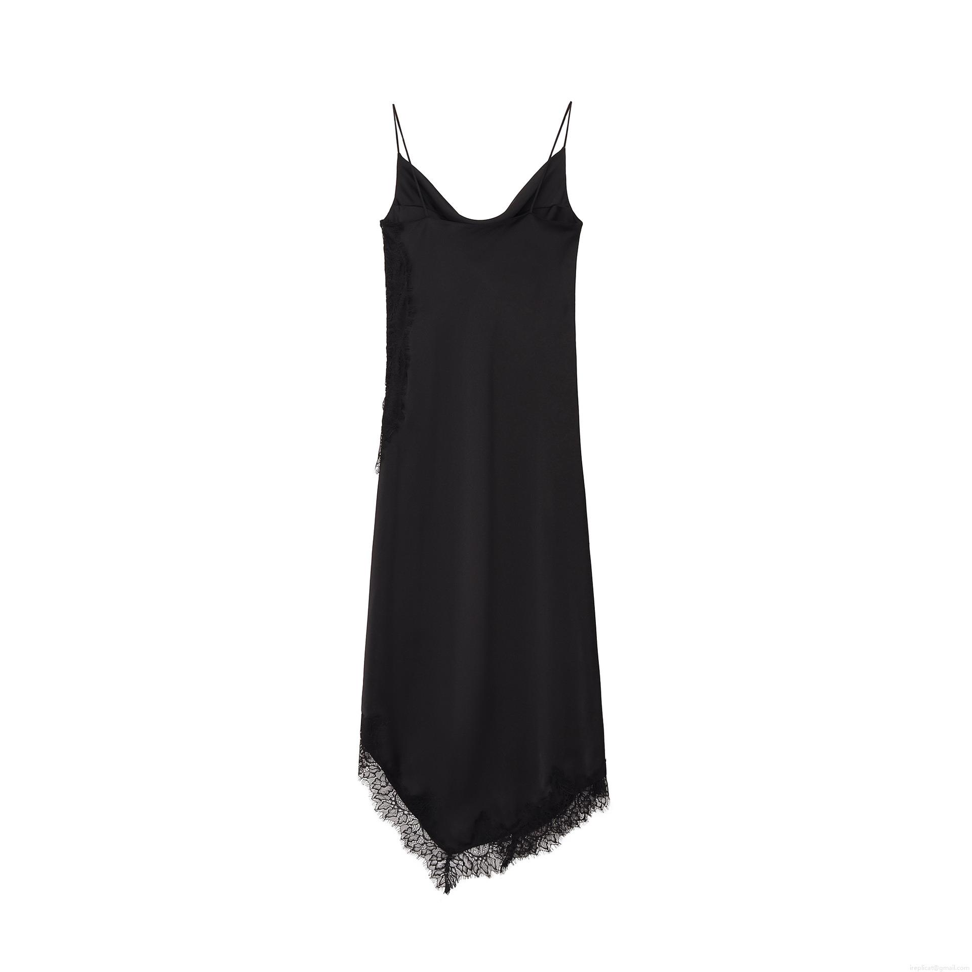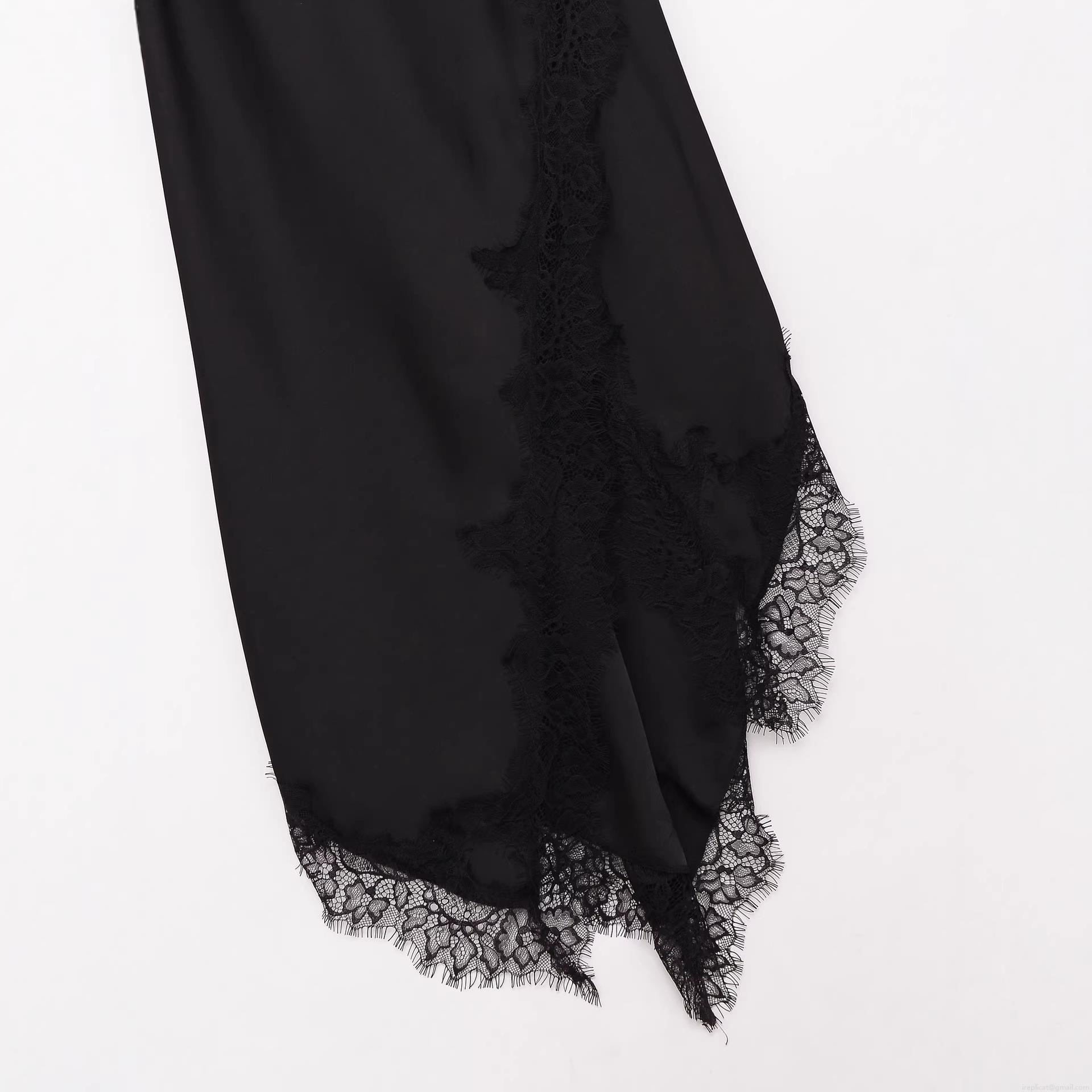 Sexy Satin Lace Patchwork Cami Dress Women Cowl Neck Sleeveless Ruched Asymmetric Hem Midi Slip Dress Elegant Evening Party Dress
