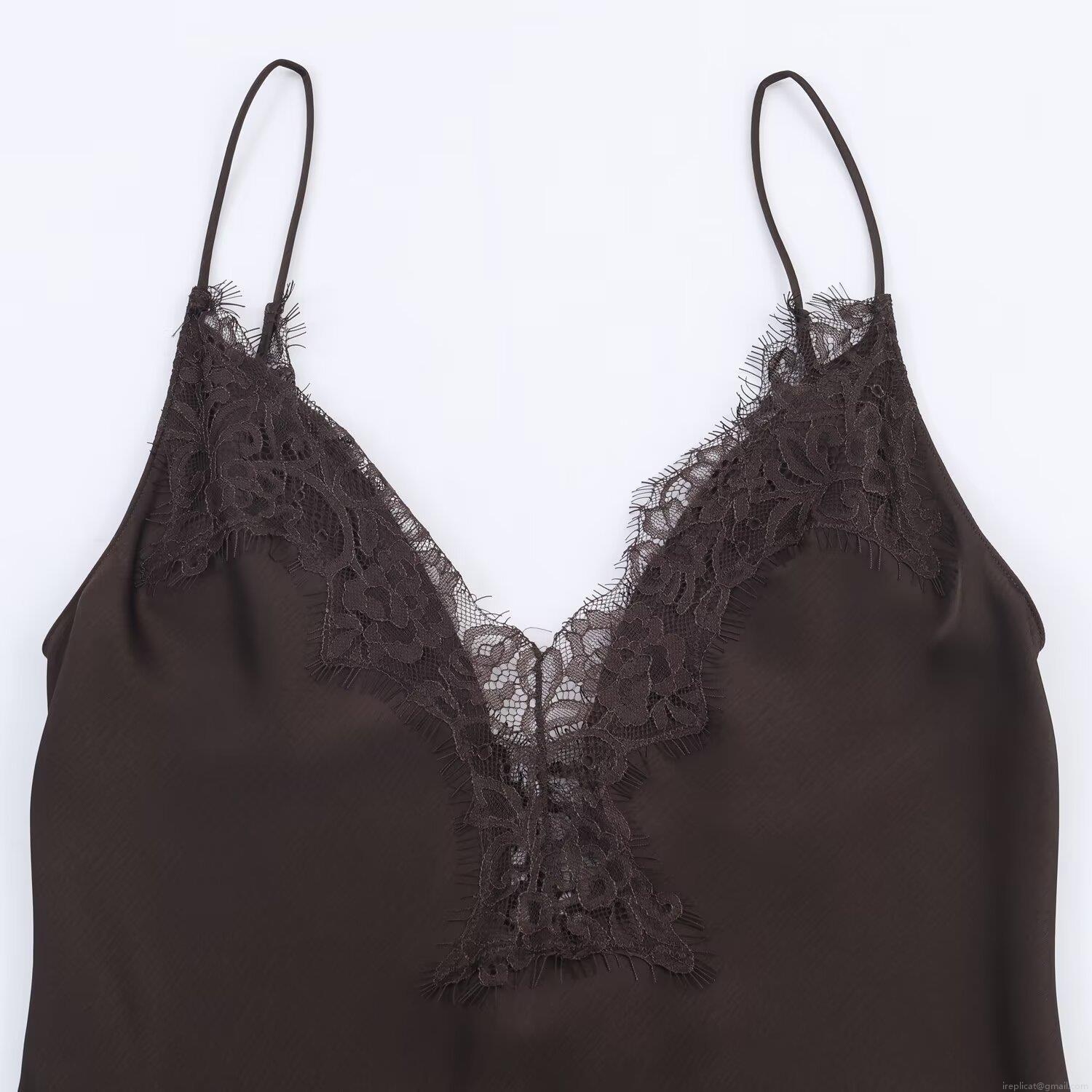 Sexy Satin Midi Slip Dress for Women with Lace Trim V Neck Spaghetti Strap Asymmetric Hem Slim Fit Evening Party Bodycon Clubwear