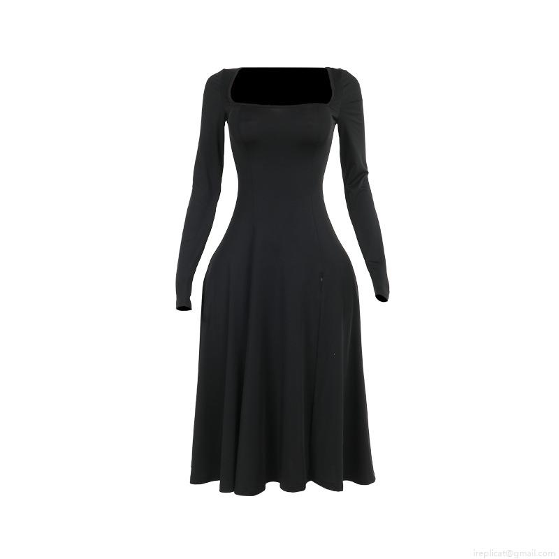 • Sexy Square Neck Long Sleeve Bodycon Midi Dress With High Split Solid Color Elegant Slim Fit Party Clubwear Dress For Women