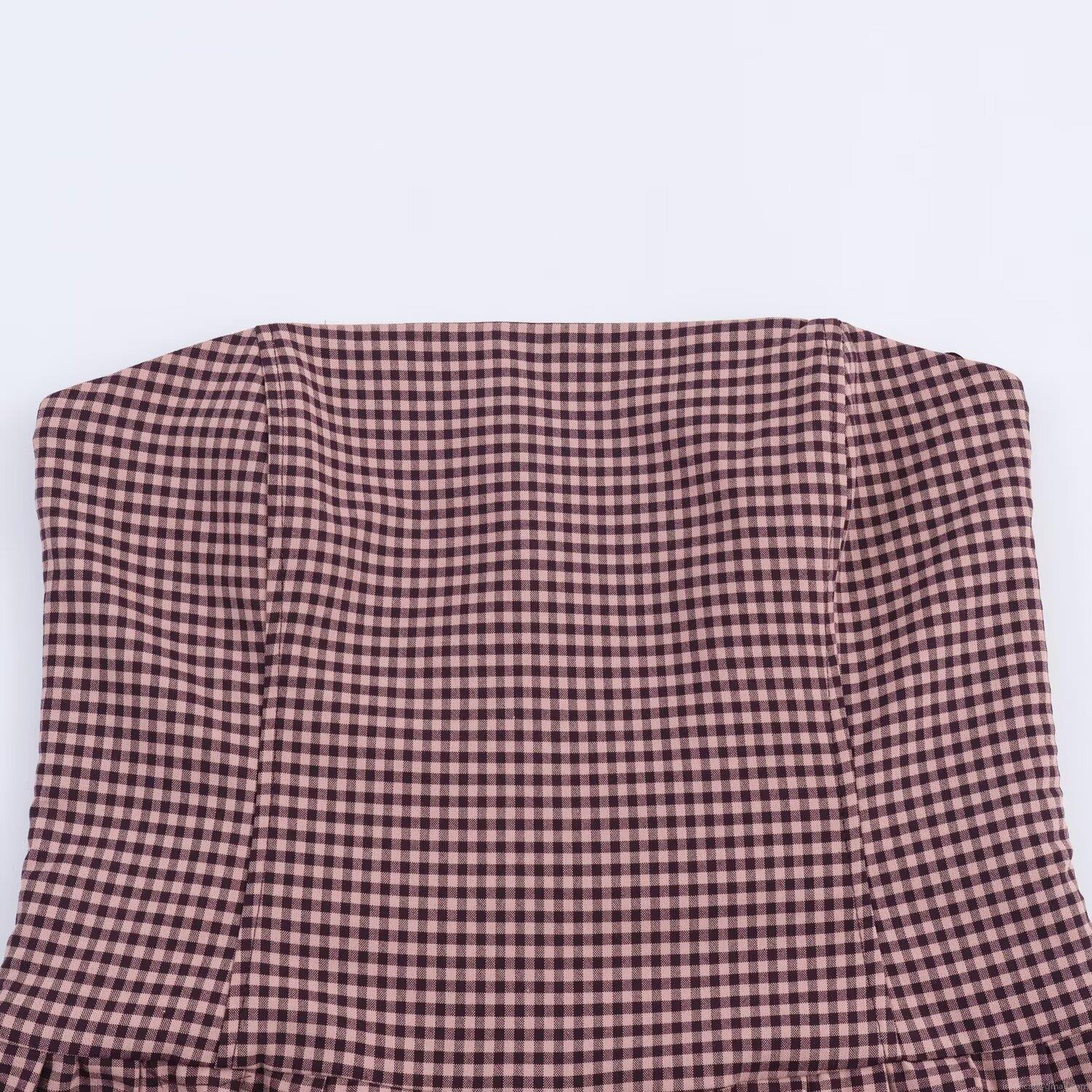 • Sexy Strapless Gingham Poplin Midi Dress For Women Elegant Backless High Waist A-Line Plaid Summer Sun Dress Party Evening Clubwear Apparel