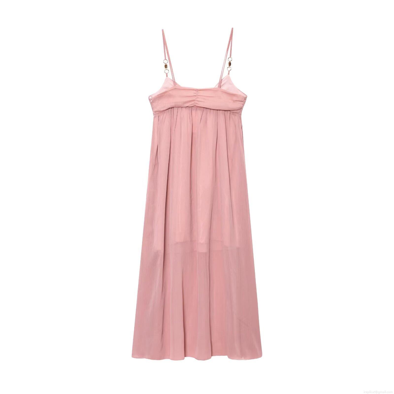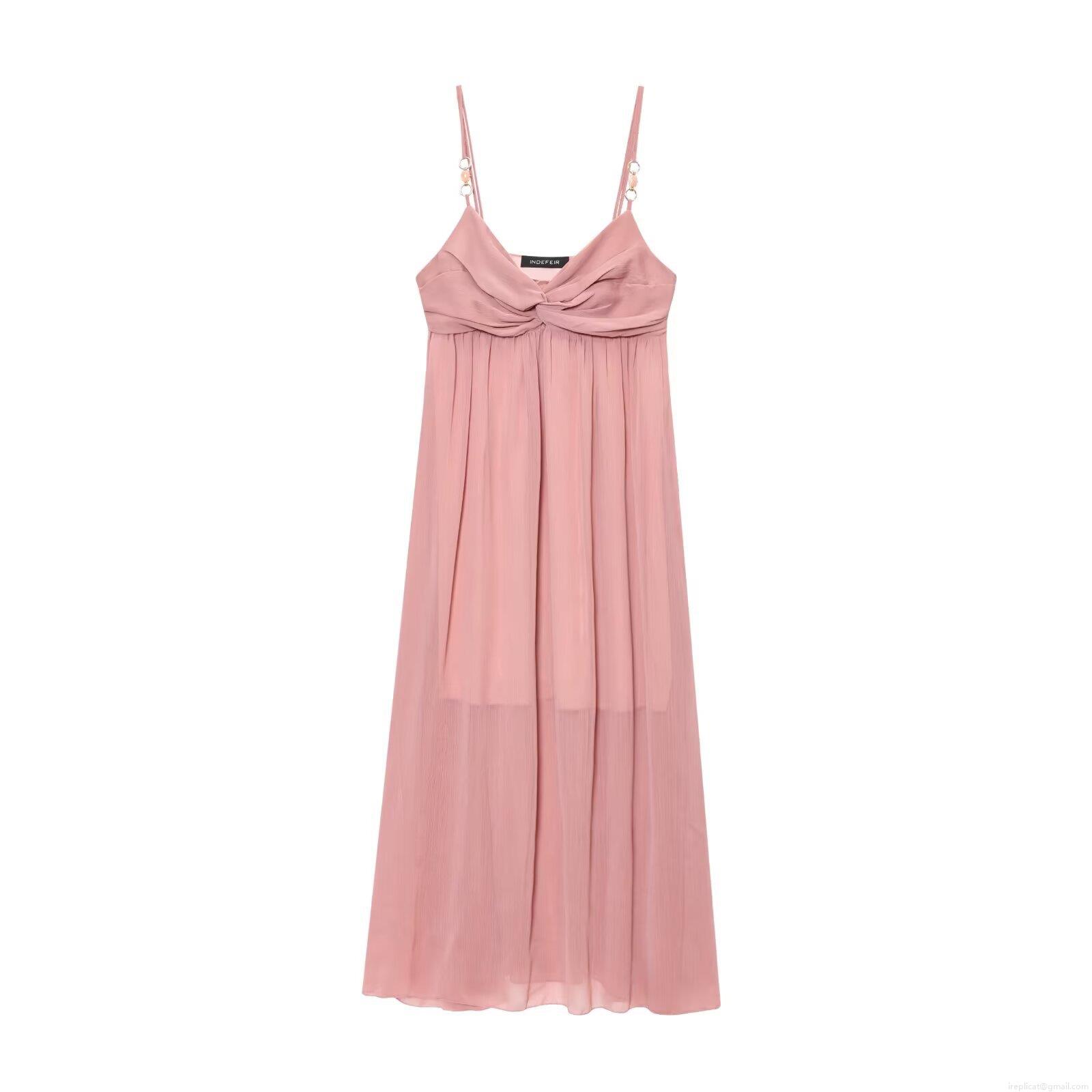 • Sexy Women's Ruched Midi Cami Dress Polyester V-Neck Sleeveless Solid Color Elegant Party Vacation Streetwear Pink Dress With Metal Rings Decoration