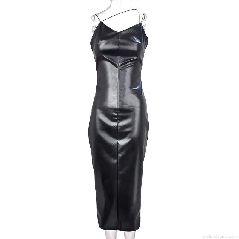 • Sexy Women's V Neck Spaghetti Strap PU Leather Bodycon Midi Dress Solid Color Sleeveless Side Slit Pencil Club Party Night Out Outfits