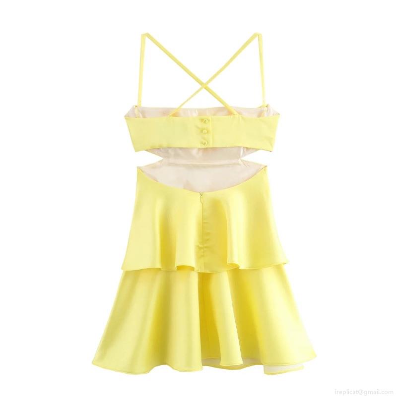Sexy Yellow Satin Midi Dress For Women Elegant Ruched Layered Bodycon Cami Dress Cross Back Cutout Party Clubwear Wedding Guest Banquet