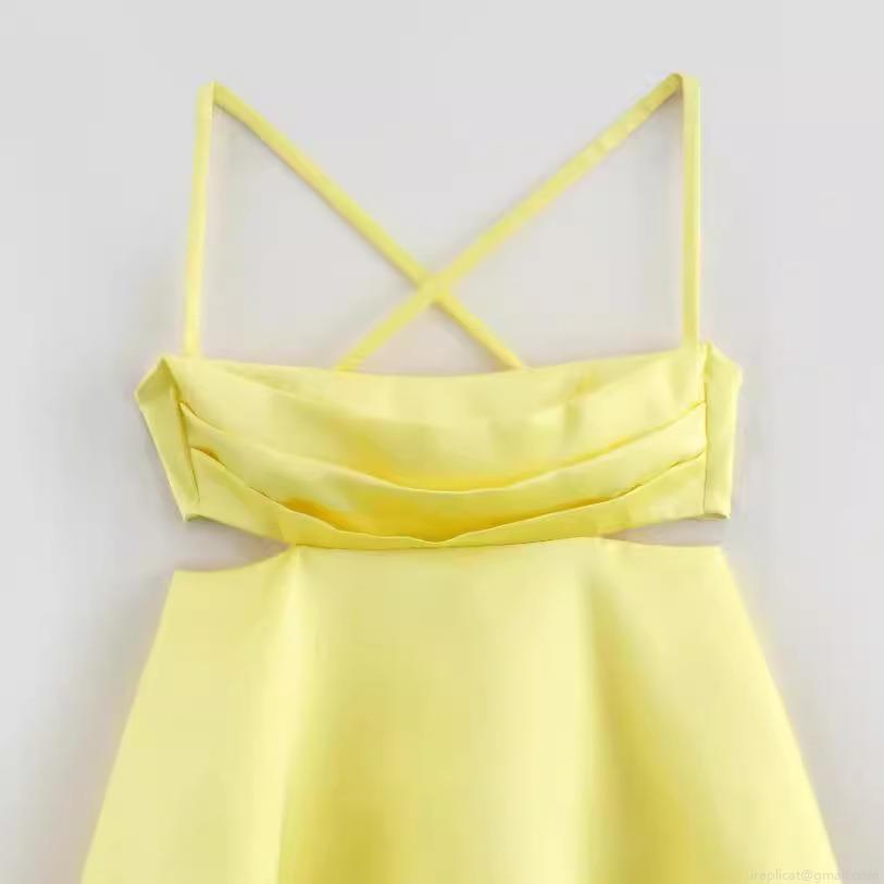 • Sexy Yellow Satin Midi Dress For Women Elegant Ruched Layered Bodycon Cami Dress Cross Back Cutout Party Clubwear Wedding Guest Banquet