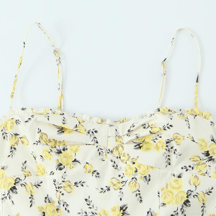 • Summer Floral Cami Dress Polyester Spandex High Waist A-Line Midi Dress With Back Bow Sexy Vacation Sundress For Women